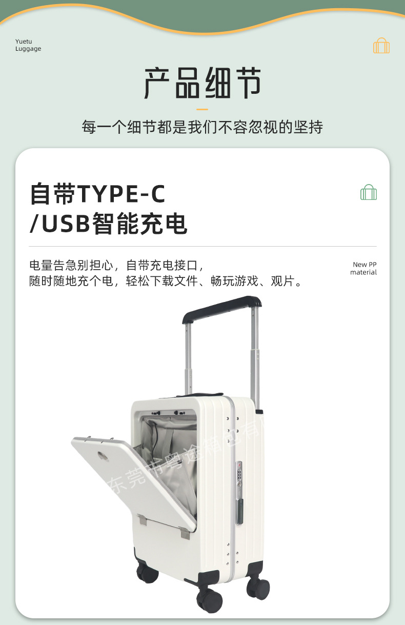 전면 오픈 뚜껑 비즈니스 트롤리 케이스 다기능 Type-c 충전 비밀번호 박스 트롤리 케이스 20 인치 탑승 수하물스토어 가기