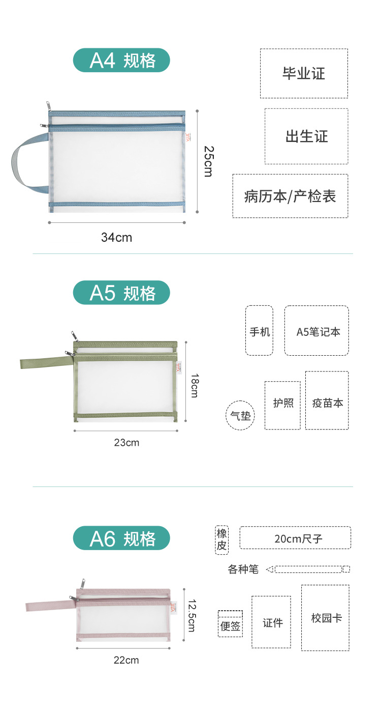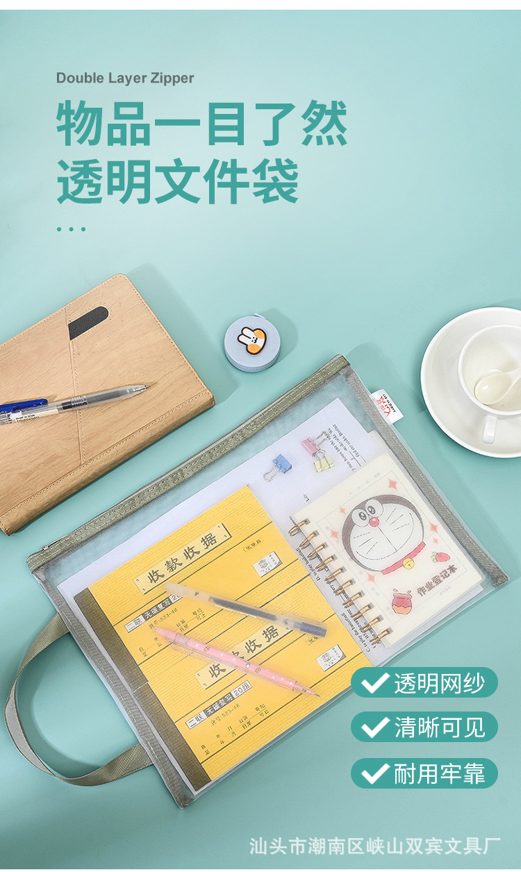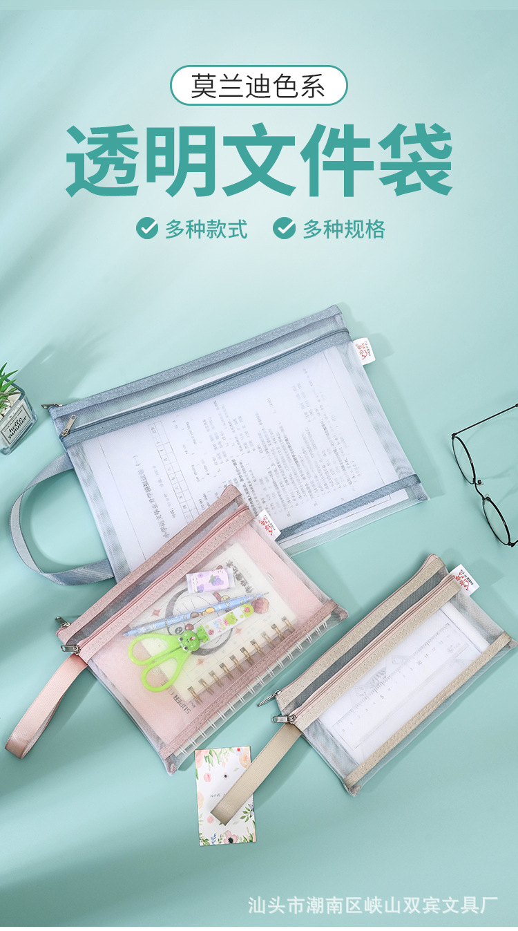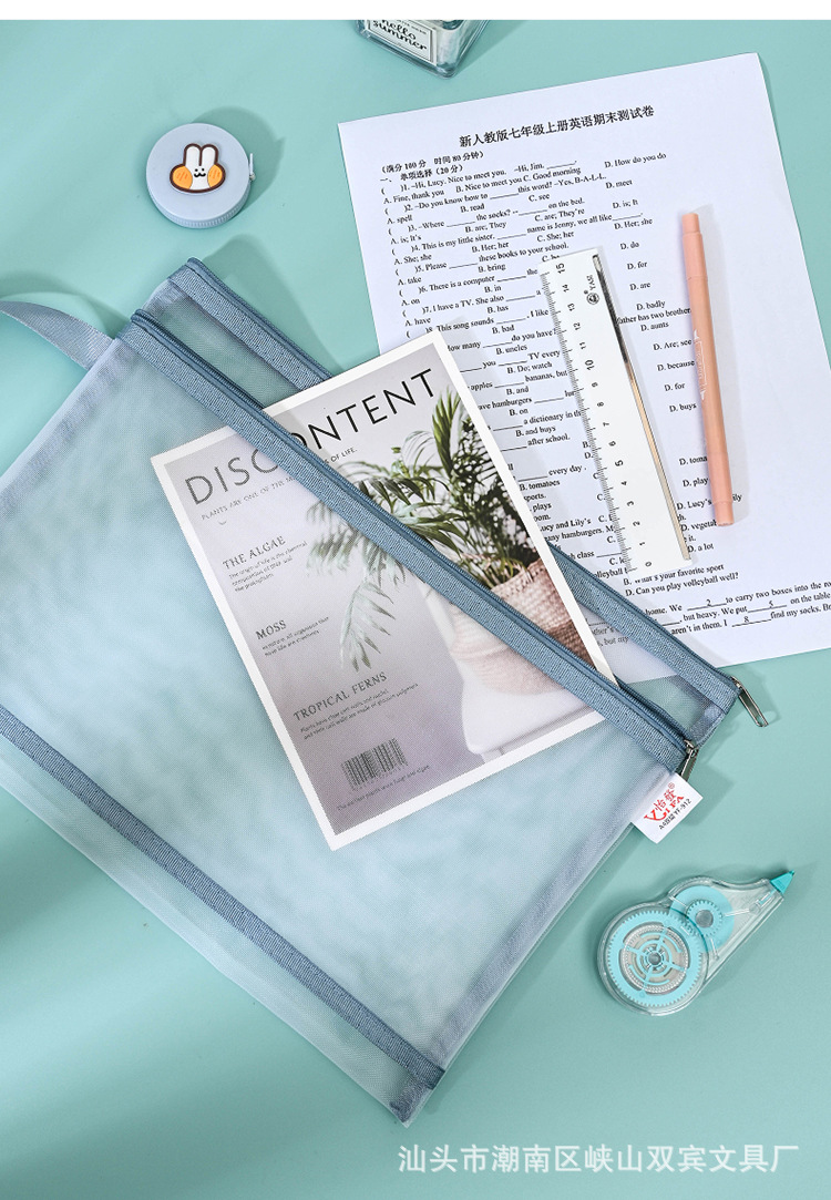 모란디 메쉬 투명 A4 학생 더블 레이어 학습 숙제 과목 가방 시험 a5a6 파일 보관 가방스토어 가기