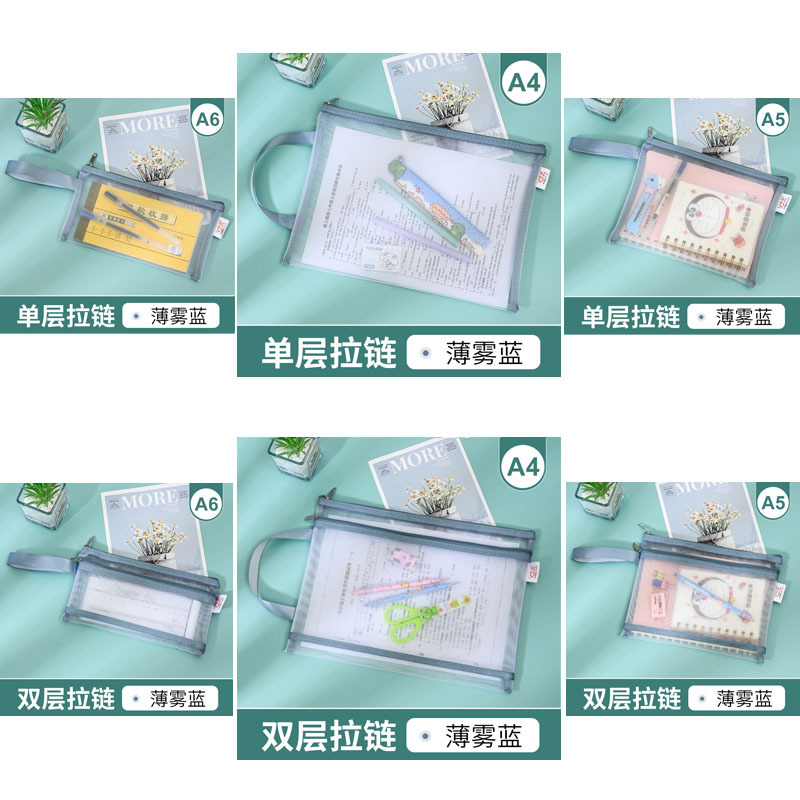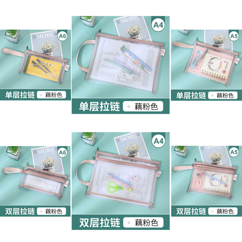 모란디 메쉬 투명 A4 학생 더블 레이어 학습 숙제 과목 가방 시험 a5a6 파일 보관 가방