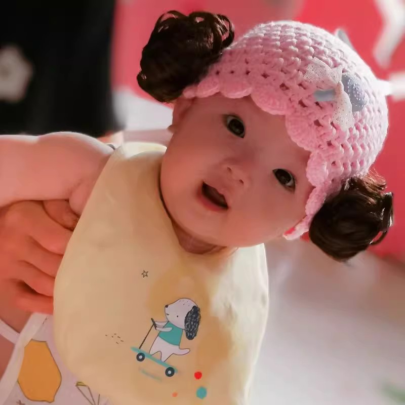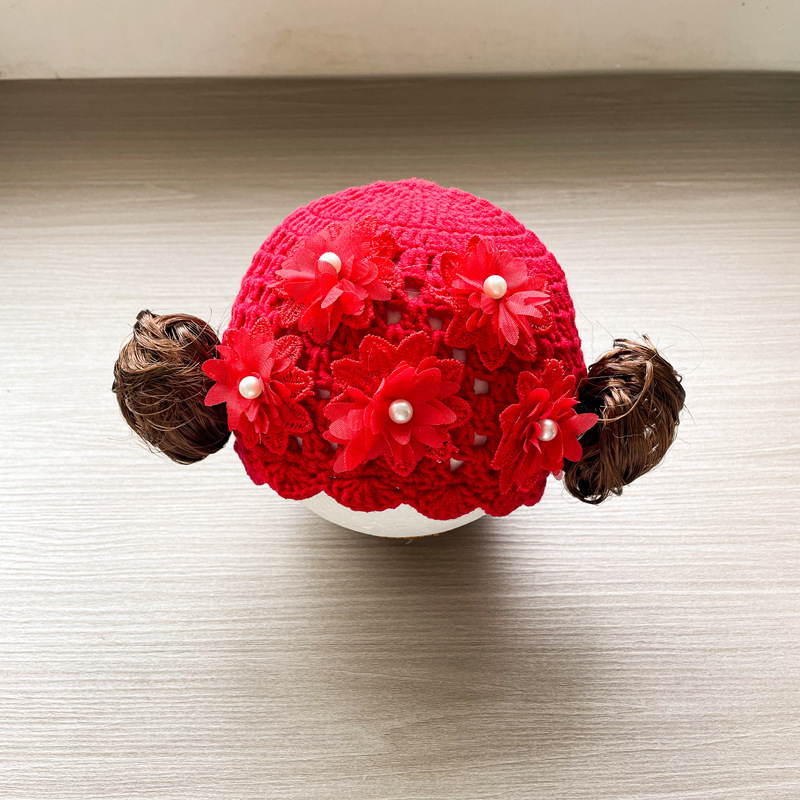 帽子采用宝宝奶棉线手工编织,柔软舒服