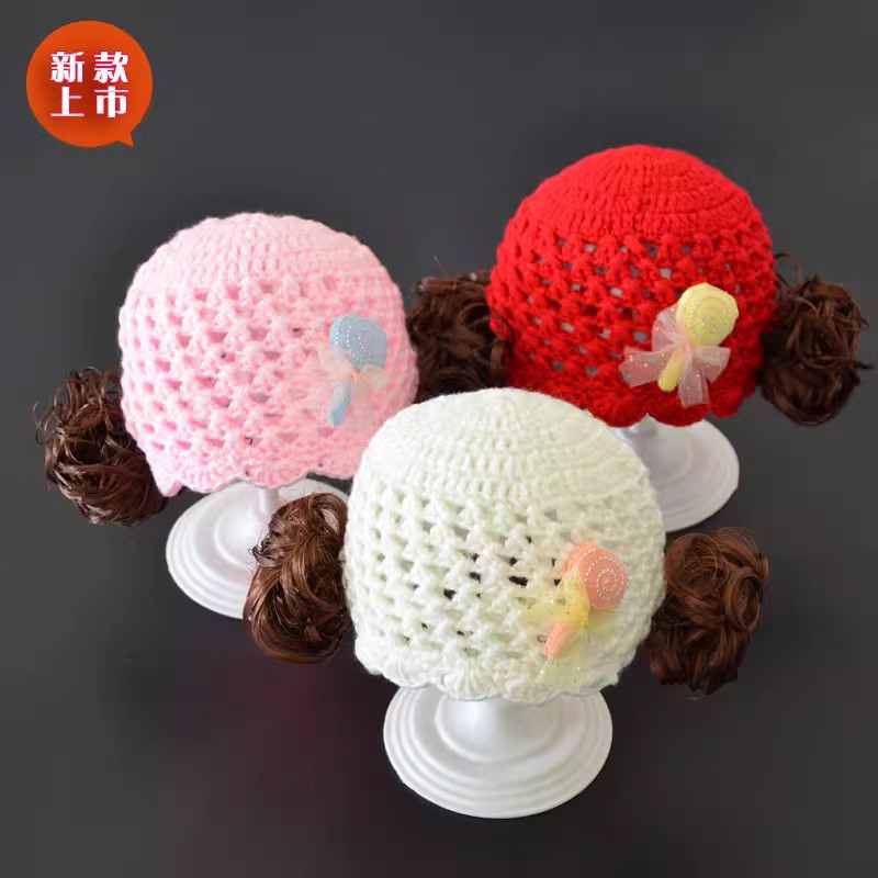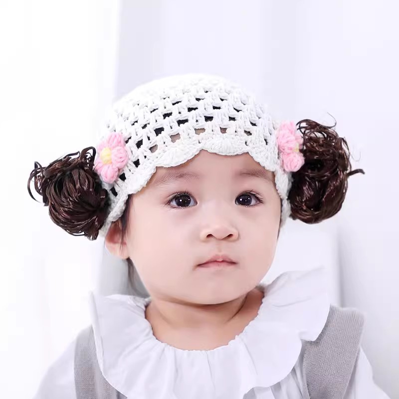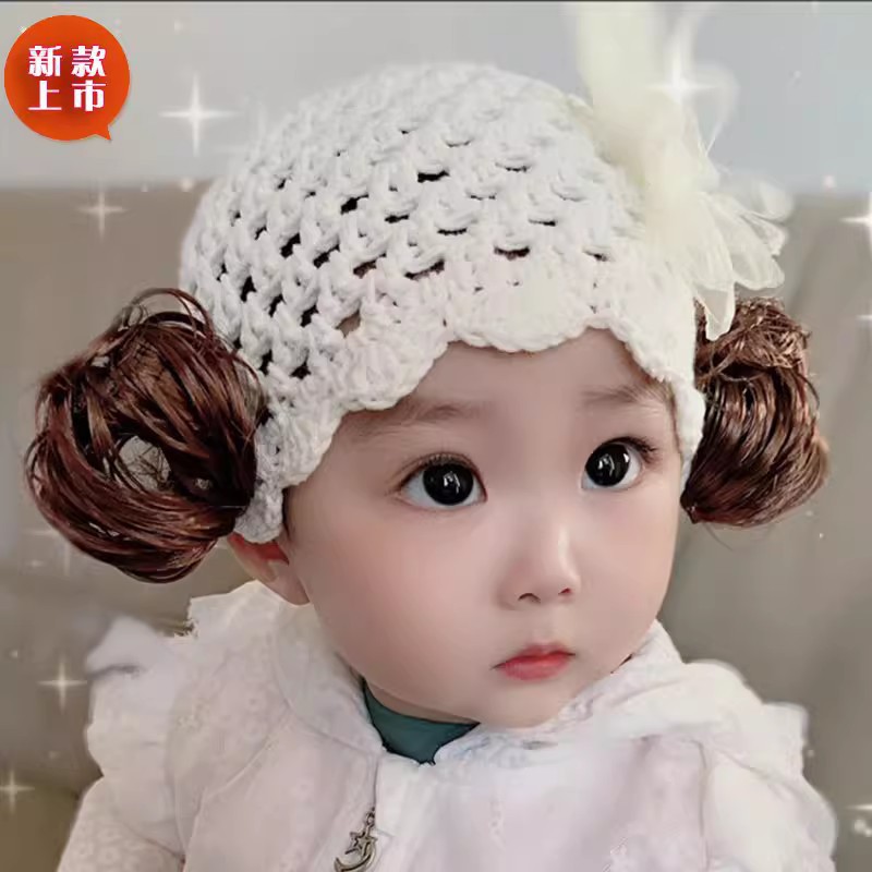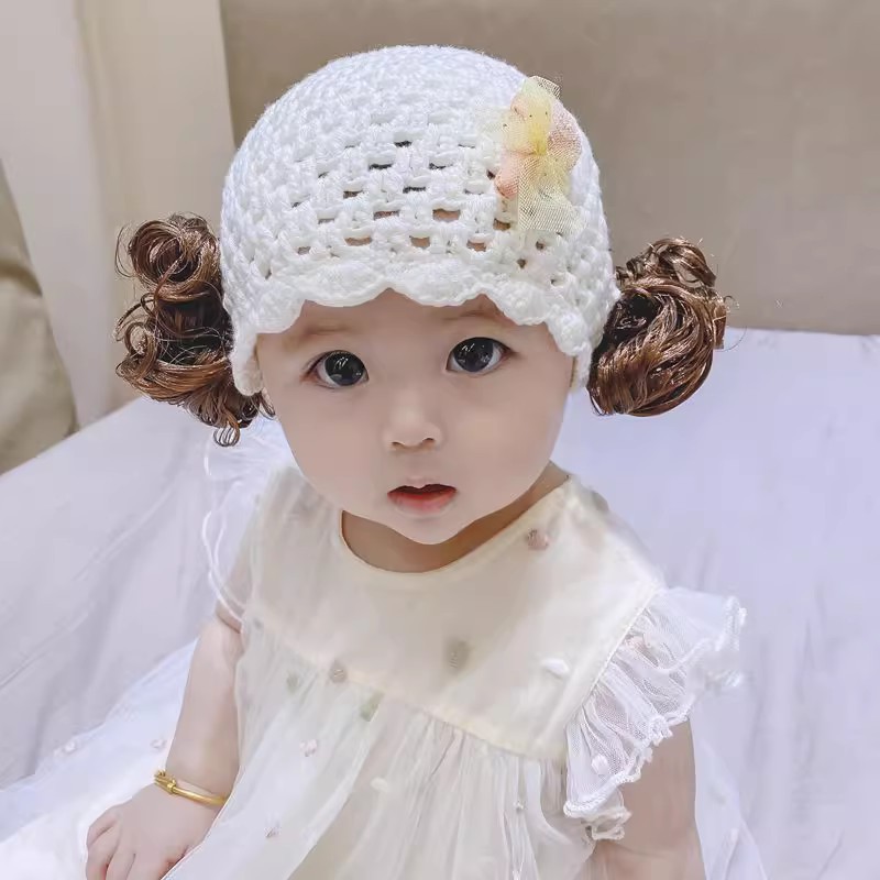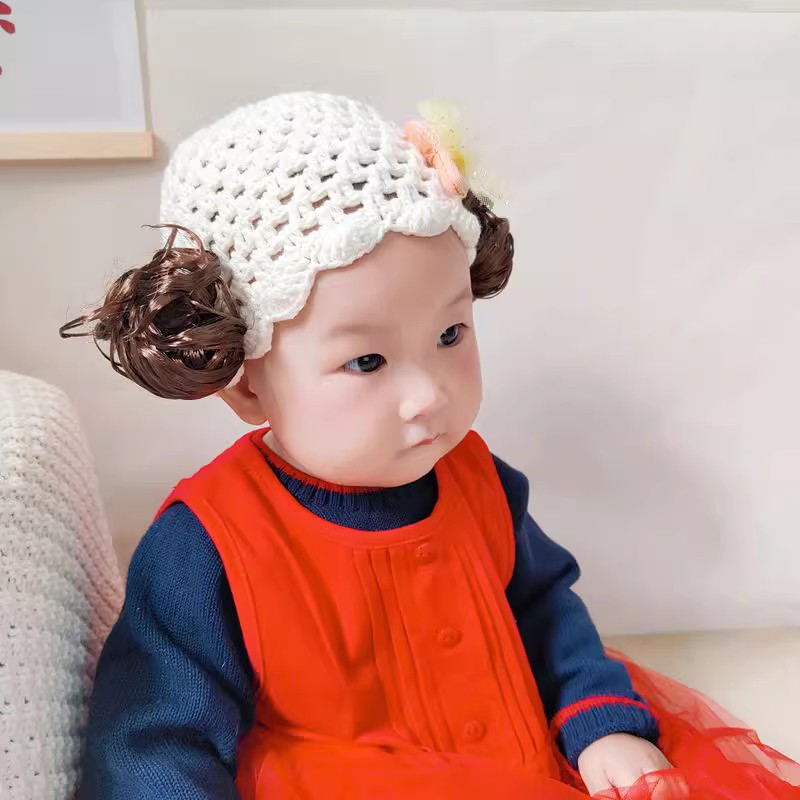 아기 모자 귀여운 슈퍼 귀여운 한국 가을 새 아기 가발 모자 공주 수제 짠 한국 소녀