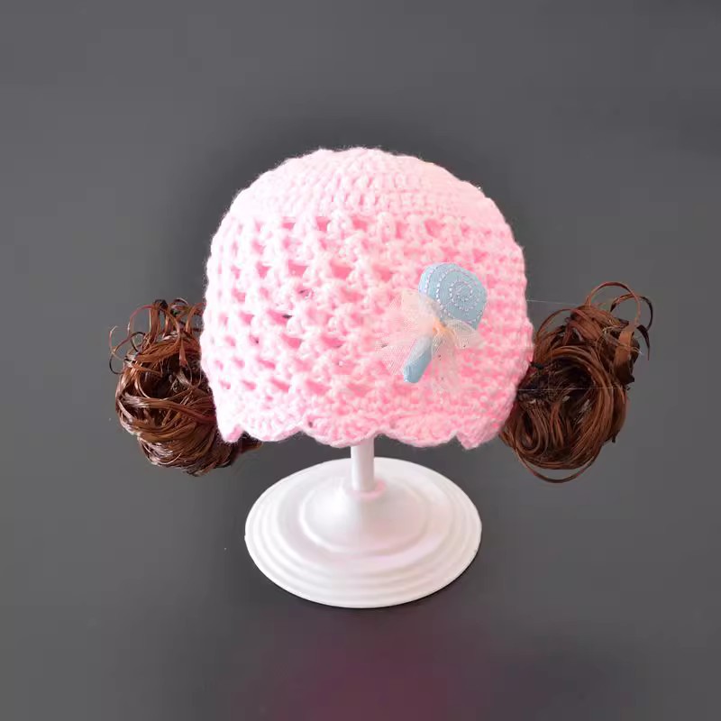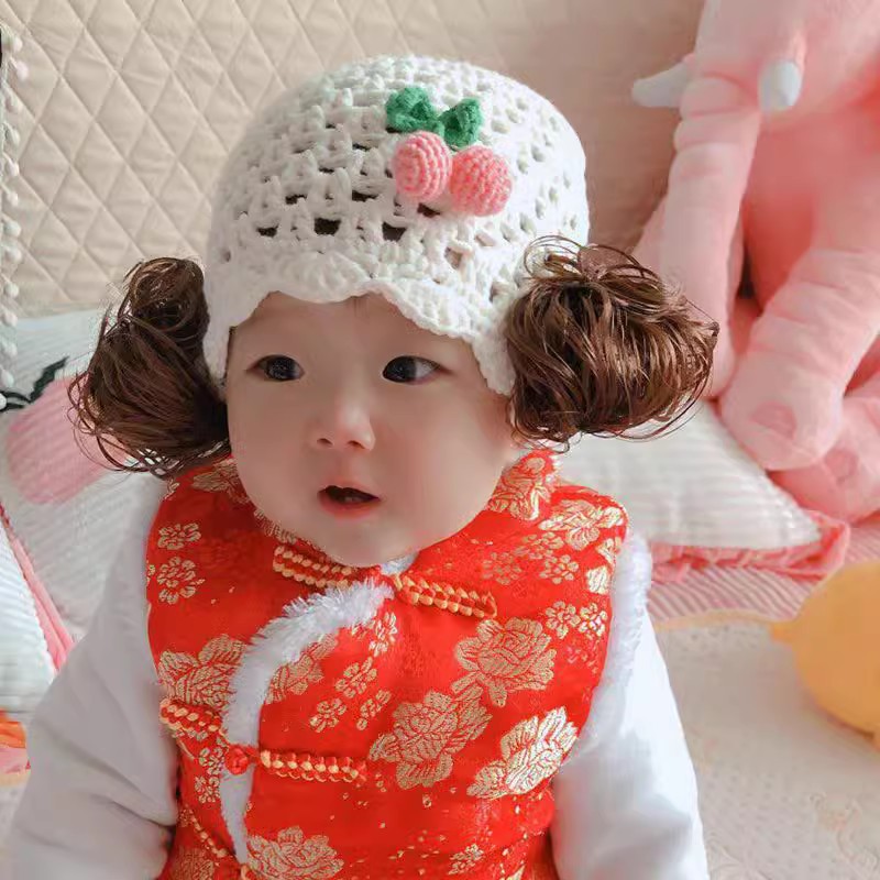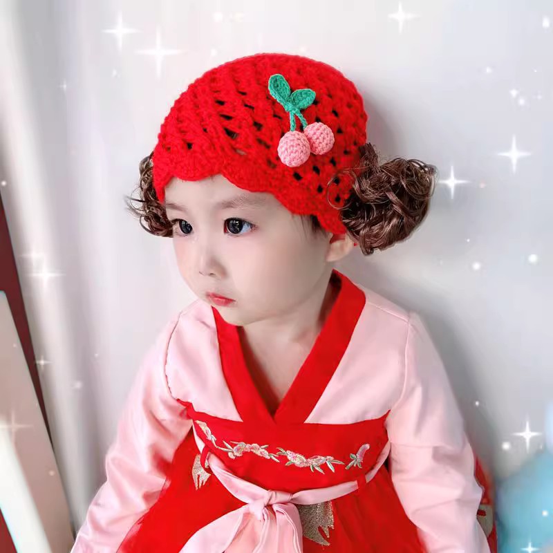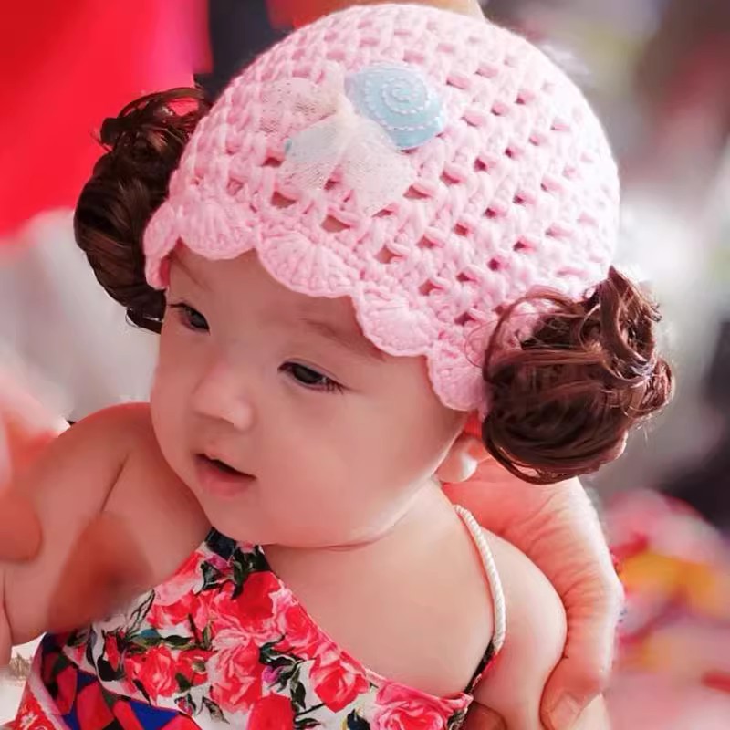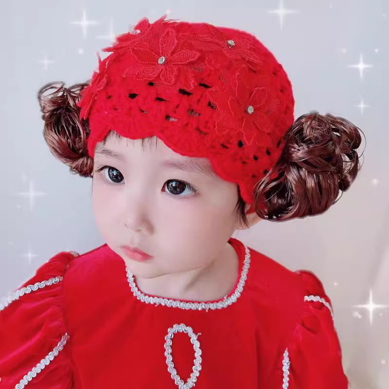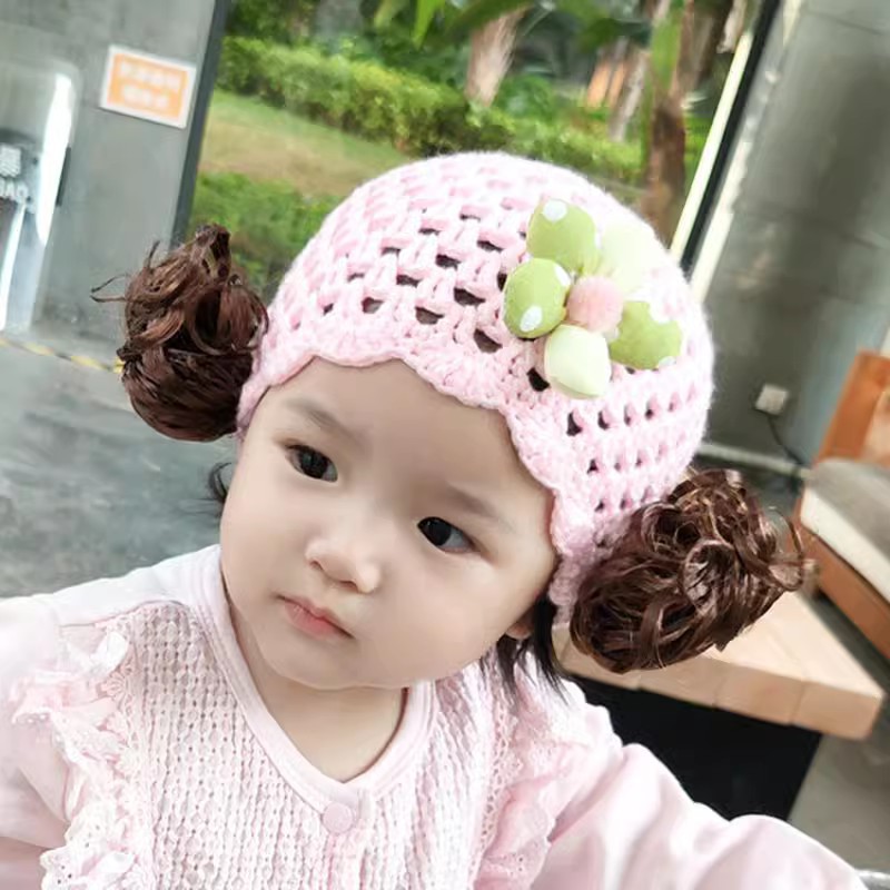 아기 모자 귀여운 슈퍼 귀여운 한국 가을 새 아기 가발 모자 공주 수제 짠 한국 소녀