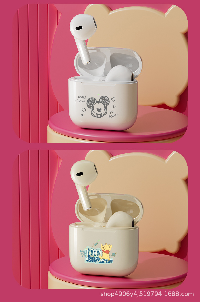 디즈니 블루투스 헤드셋 A4 무선 블루투스 헤드셋 만화 미니 귀여운 반 귀 긴 내구성