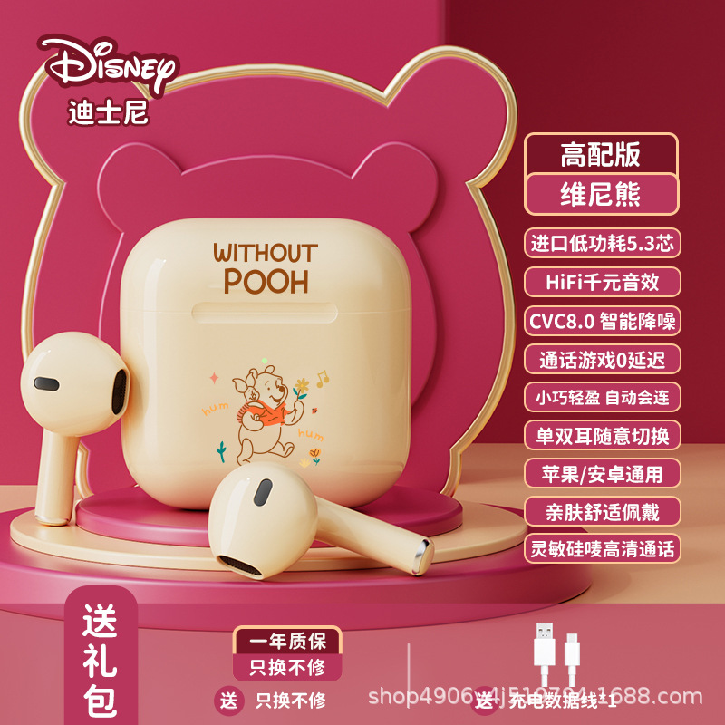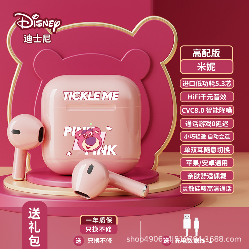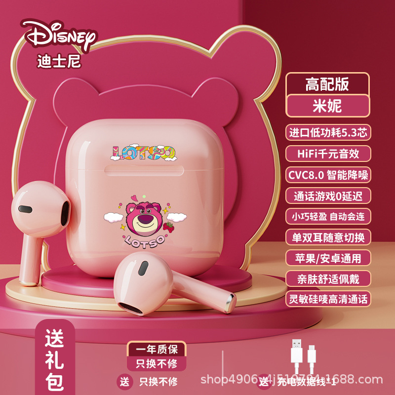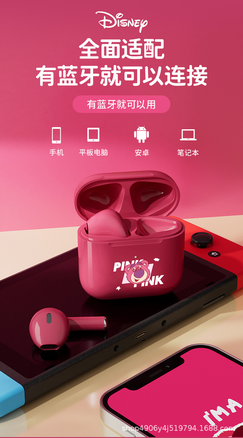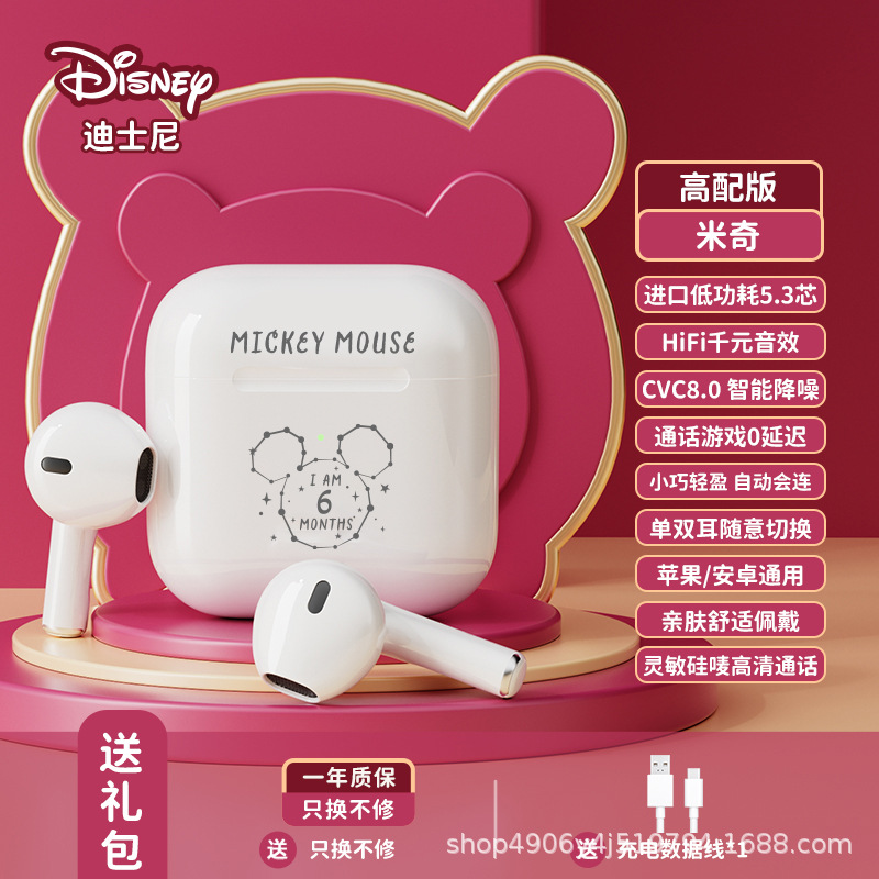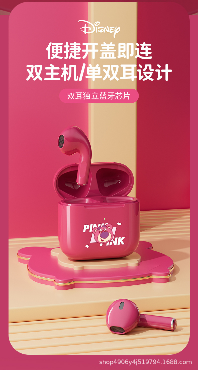 디즈니 블루투스 헤드셋 A4 무선 블루투스 헤드셋 만화 미니 귀여운 반 귀 긴 내구성스토어 가기