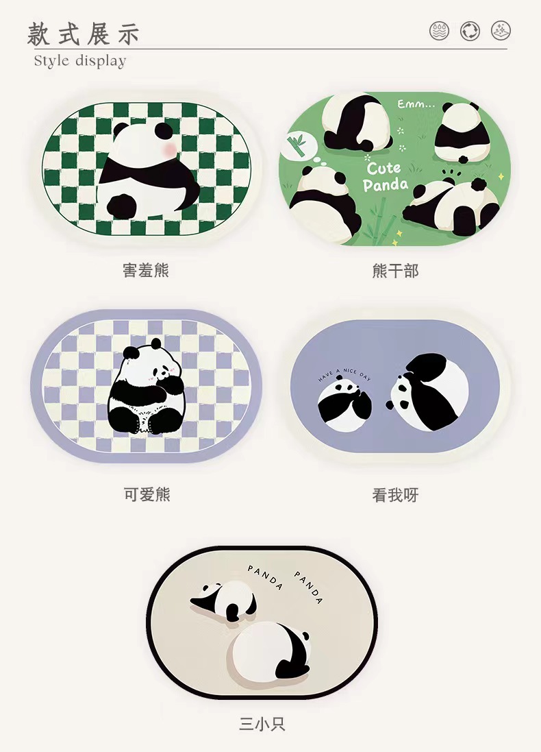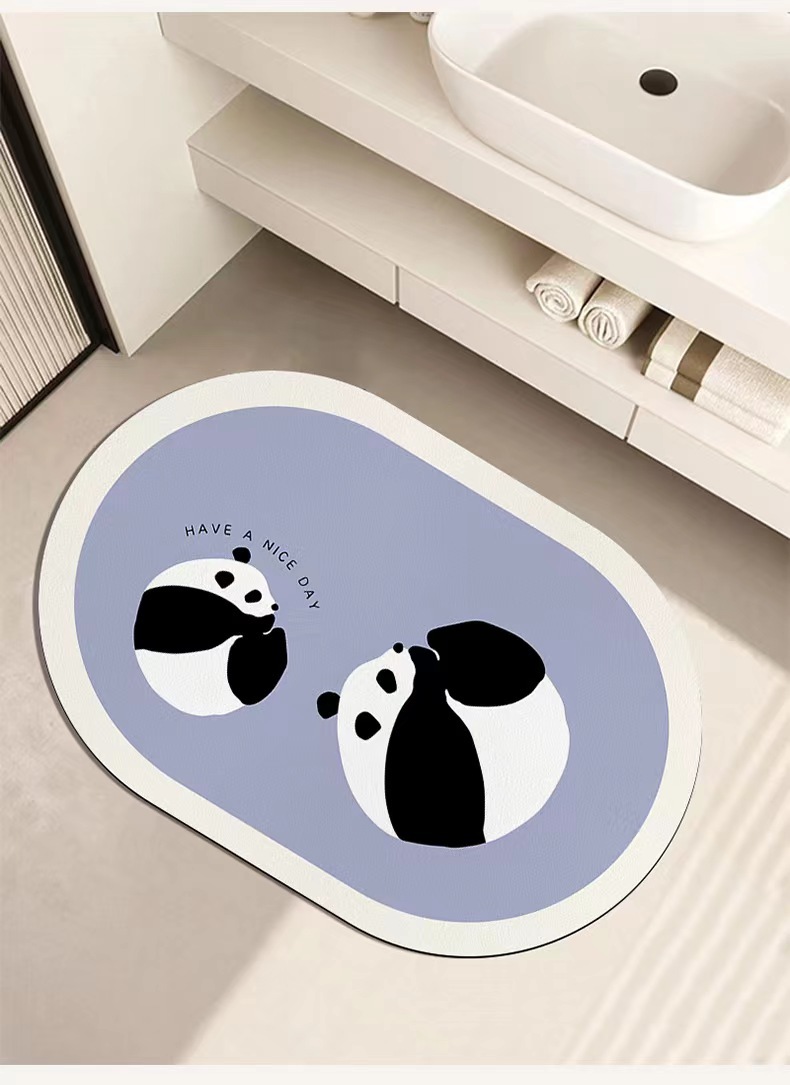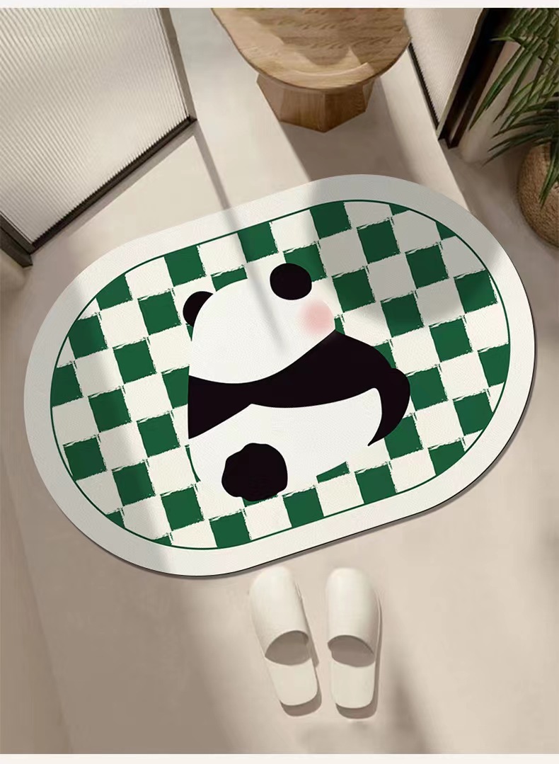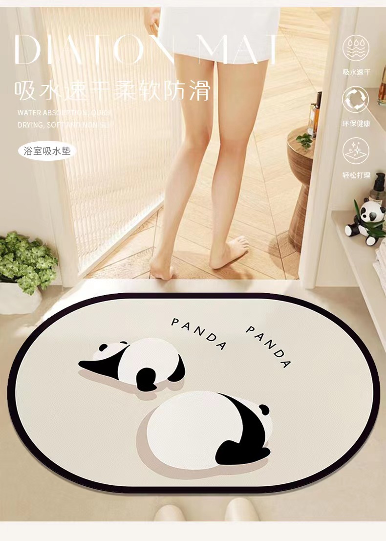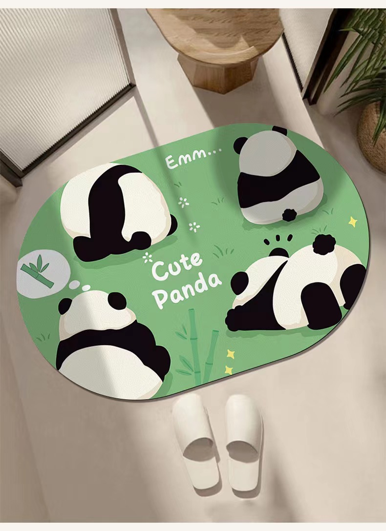 귀여운 만화 팬더 가정용 욕실 미끄럼 방지 화장실 물 흡수 발 매트 화장실 문 용 속건 규조 진흙 바닥 매트