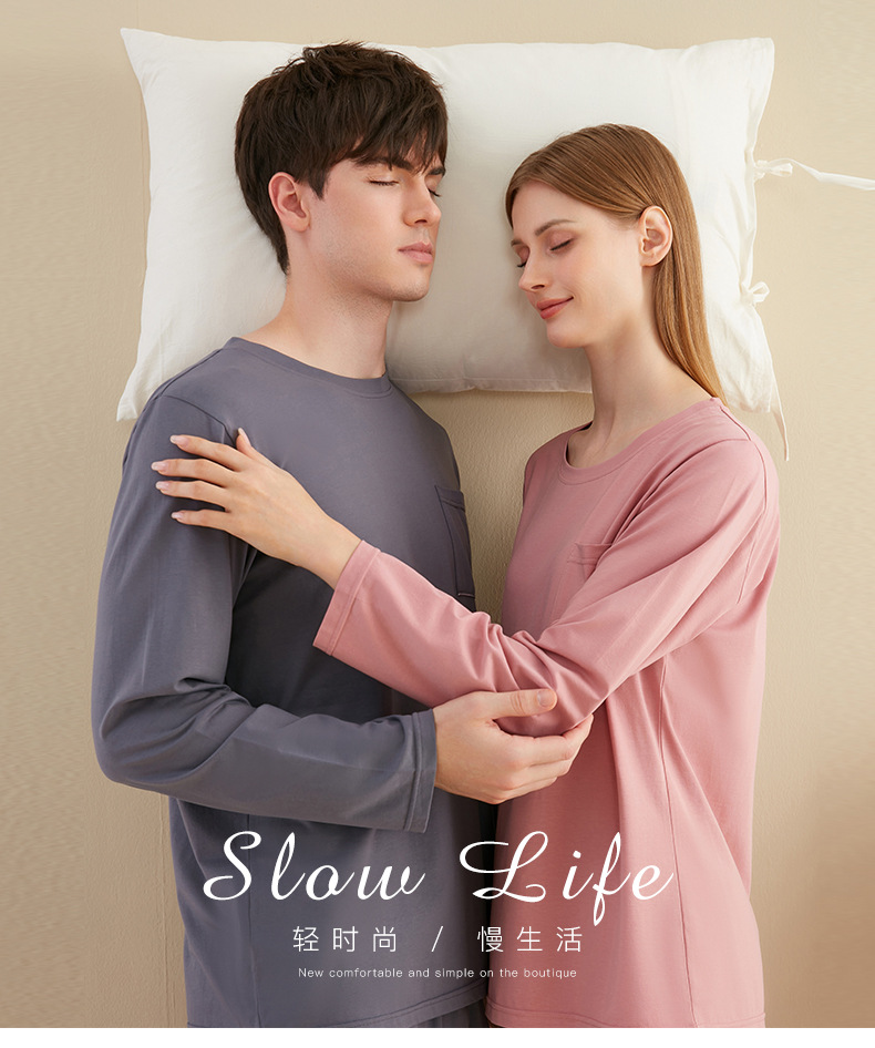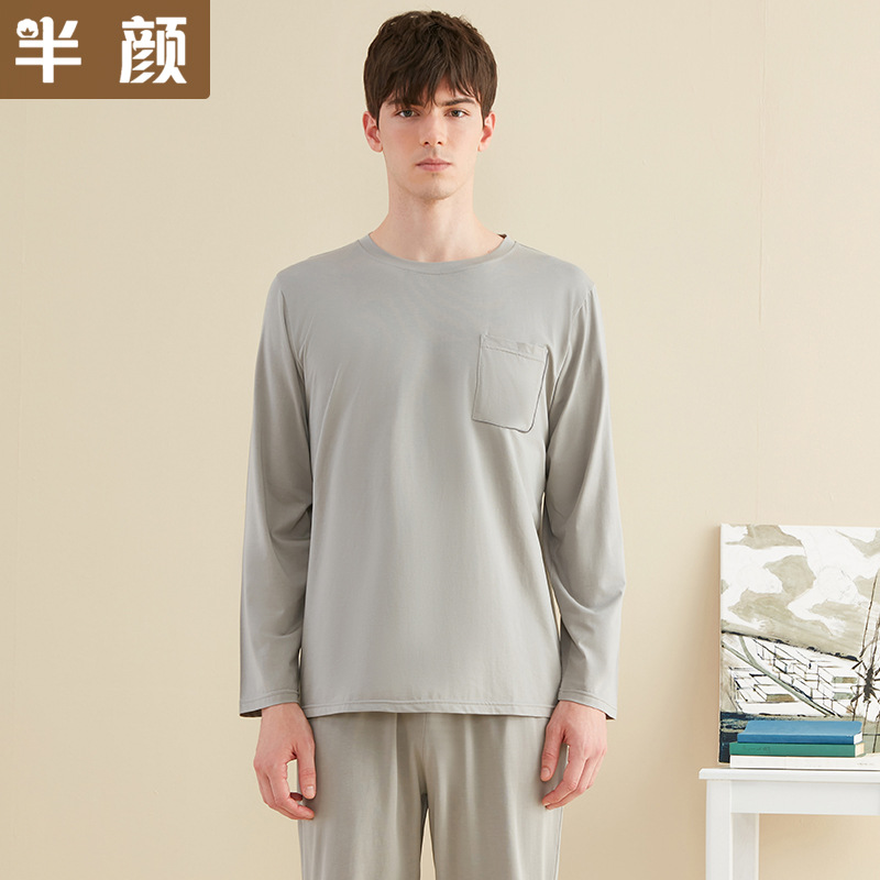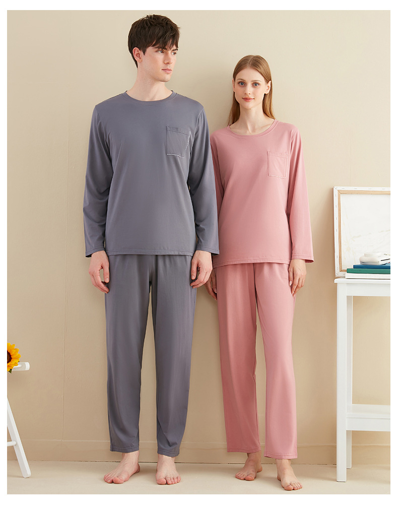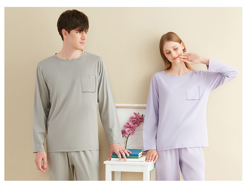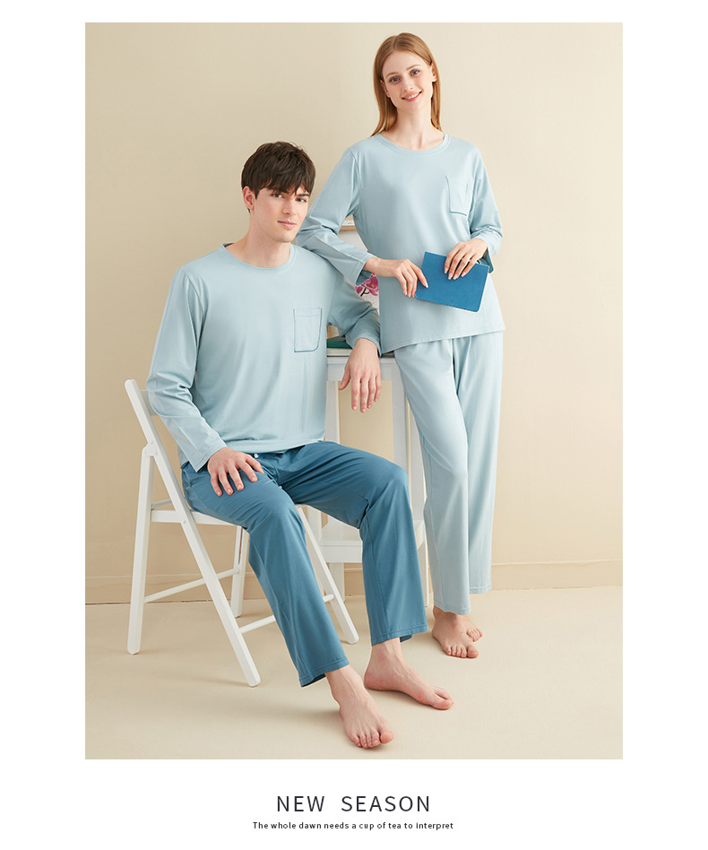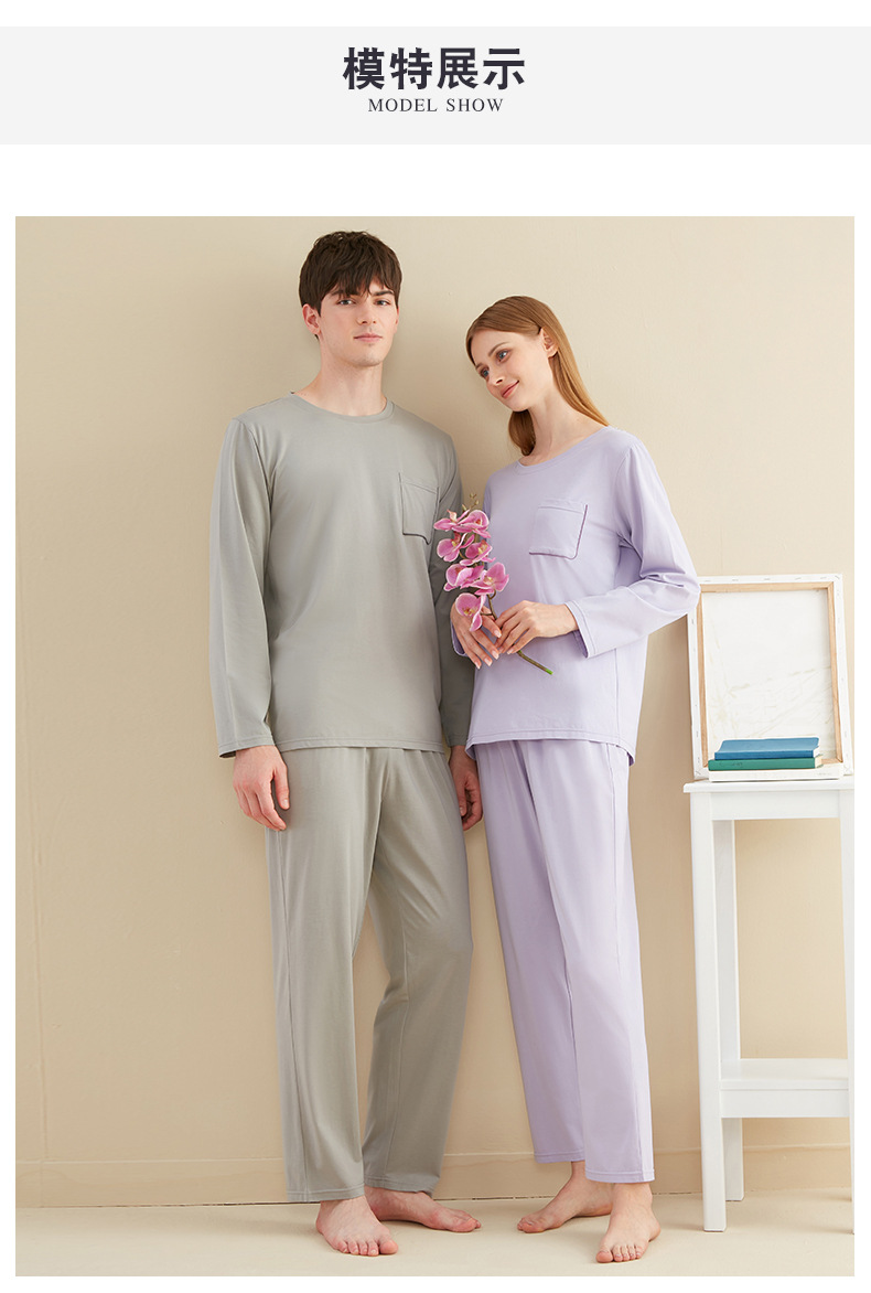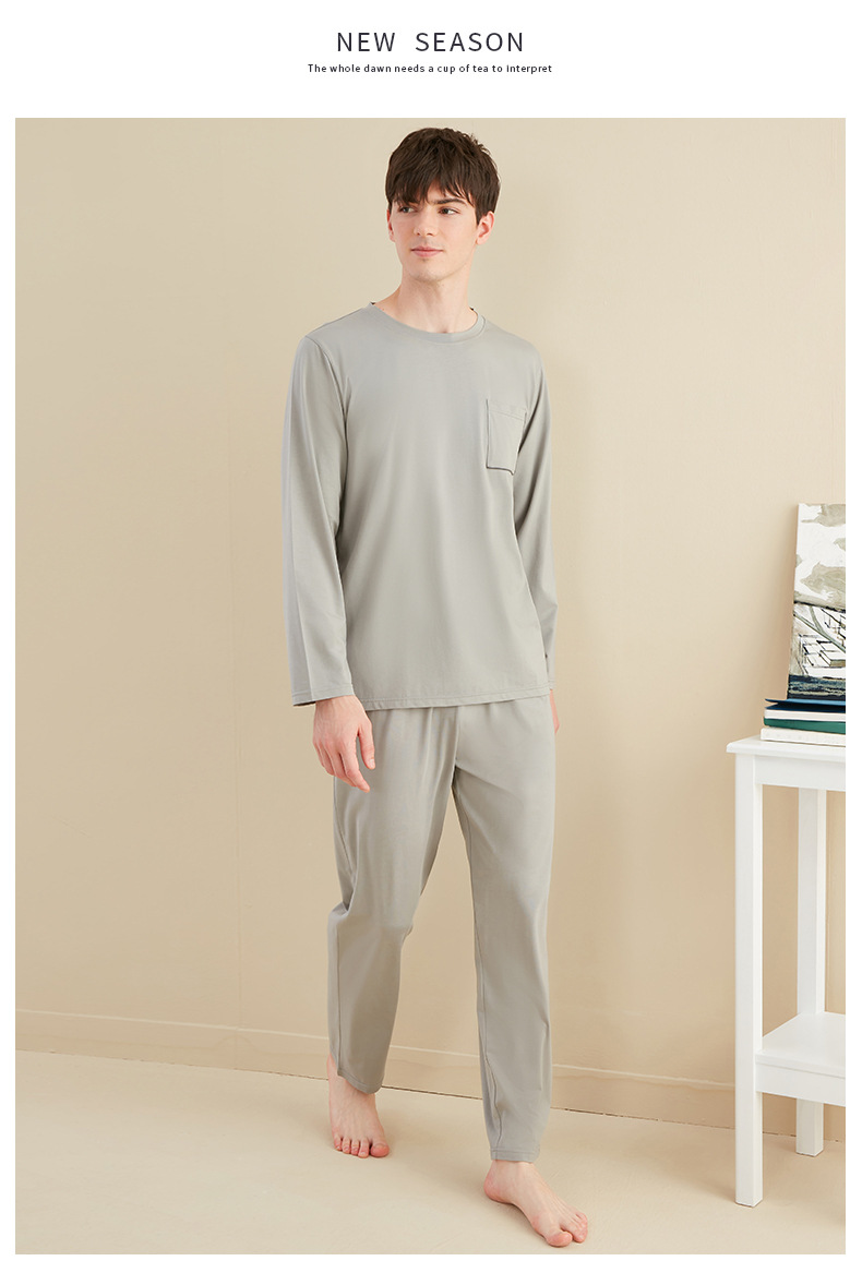 반얀 브랜드 출처 봄과 가을 커플 심플 아웃웨어 란징 모달 코튼 남성용 긴팔 바지 잠옷스토어 가기