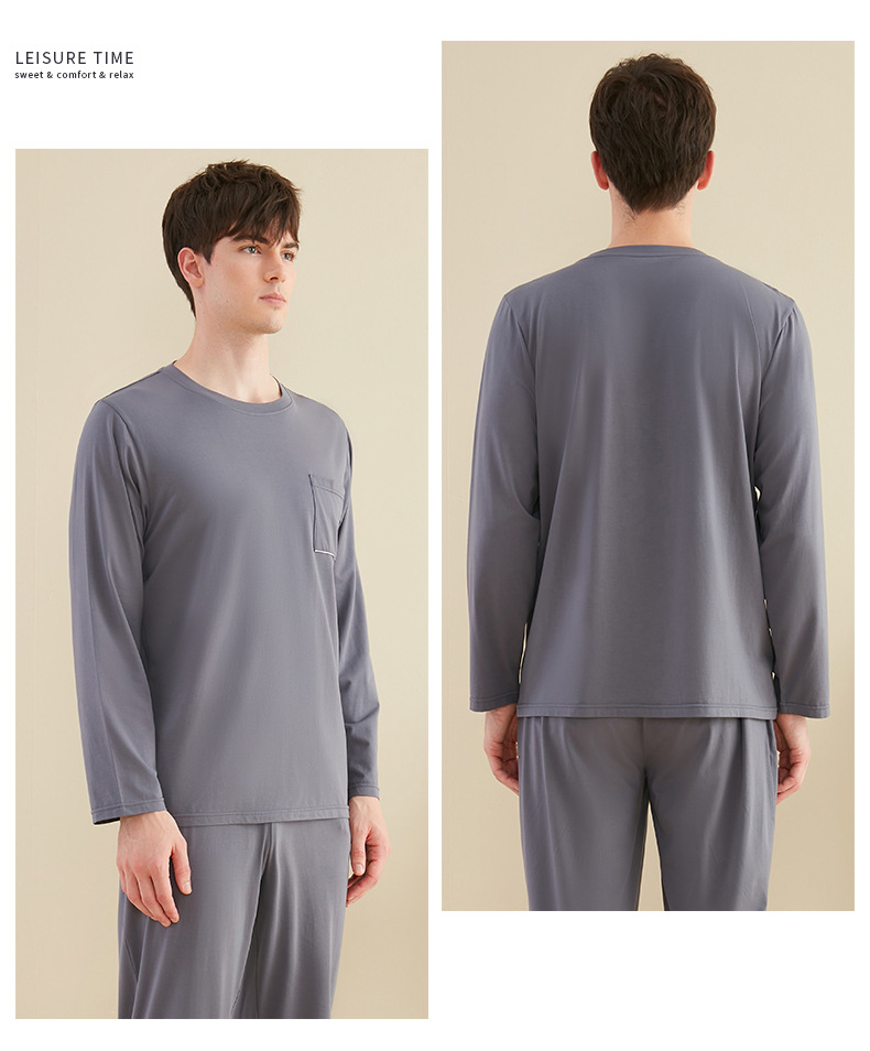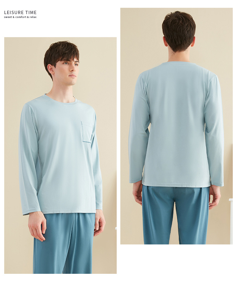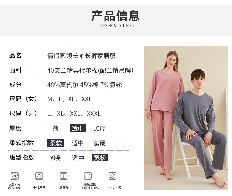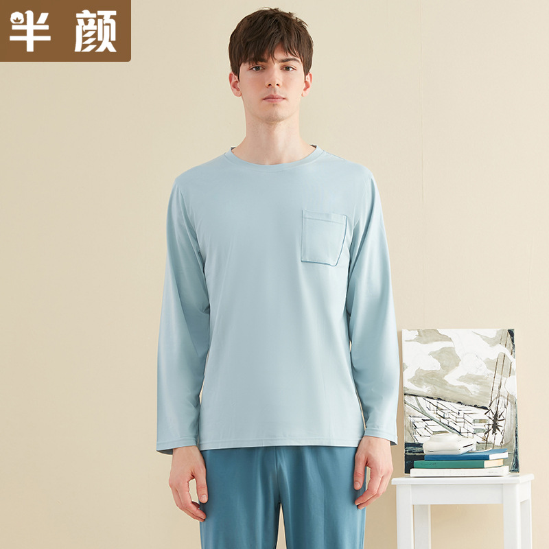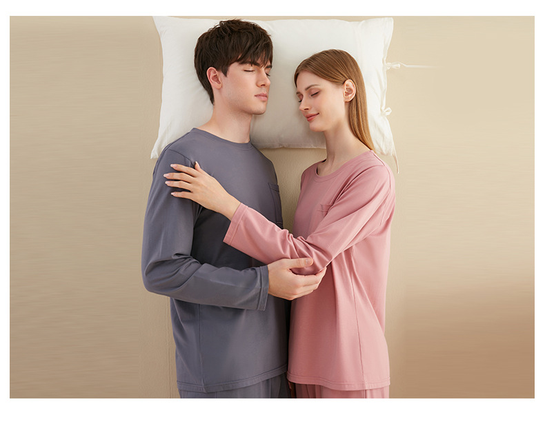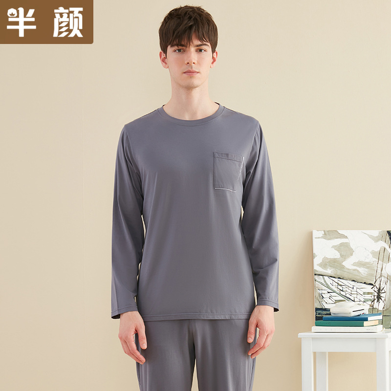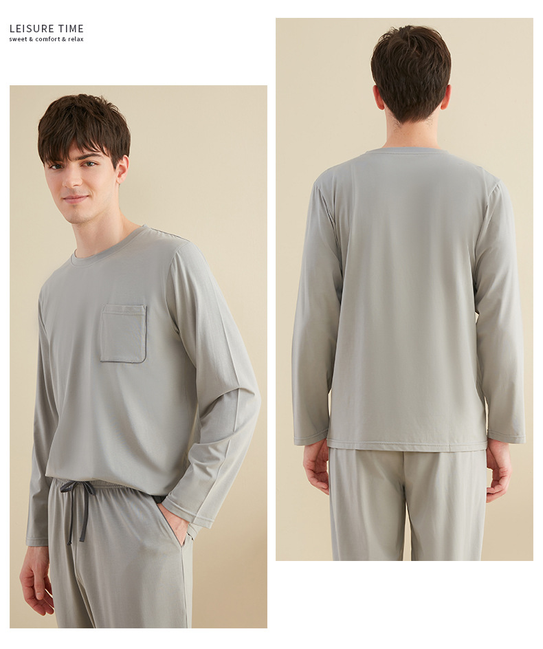 반얀 브랜드 출처 봄과 가을 커플 심플 아웃웨어 란징 모달 코튼 남성용 긴팔 바지 잠옷스토어 가기