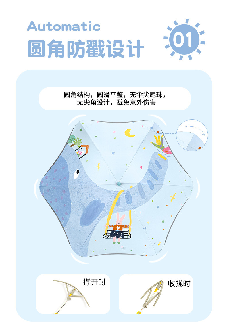 더블 레이어 안전 둥근 코너 어린이 태양 보호 우산 소녀 소년 초등학교 어린이 유치원스토어 가기