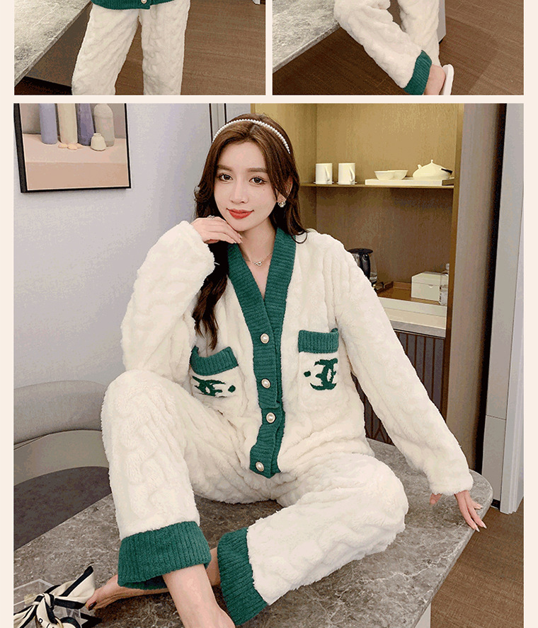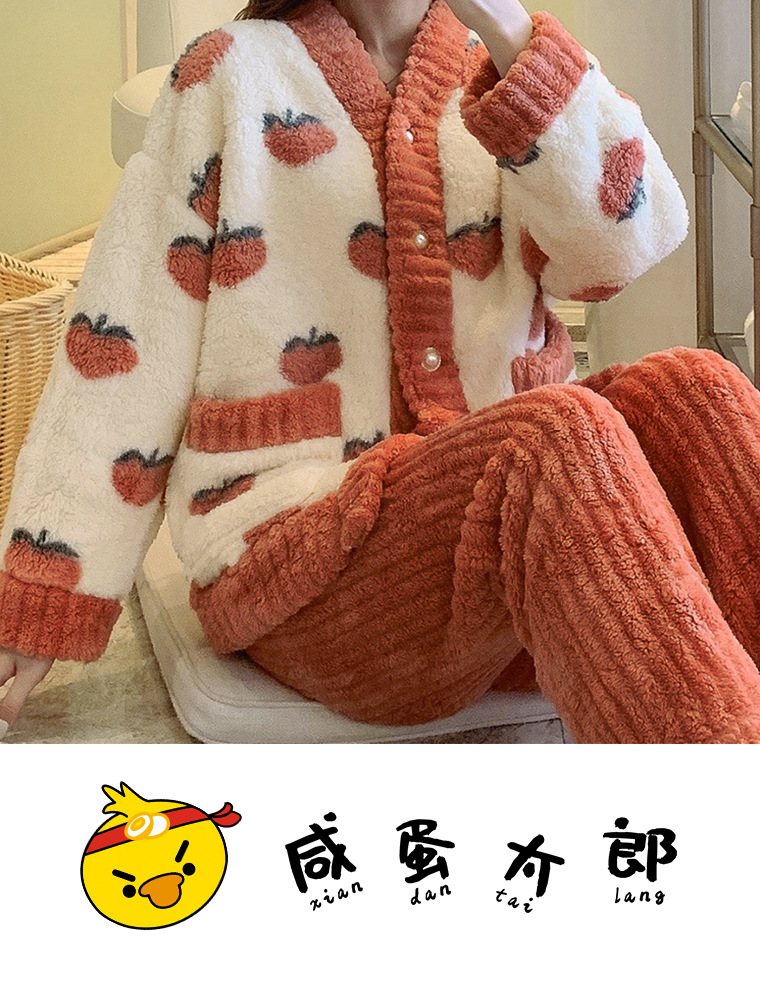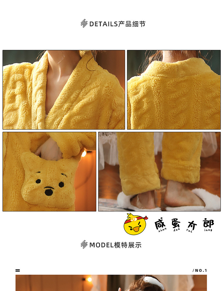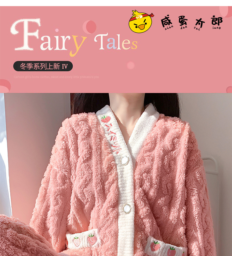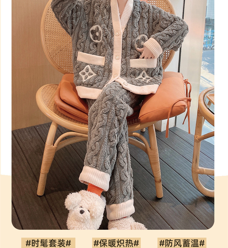 잠옷 여자의 가을과 겨울 새로운 겉옷 기모 두꺼운 따뜻한 산호 양털 플란넬 달콤한 가정 의류 세트 도매스토어 가기