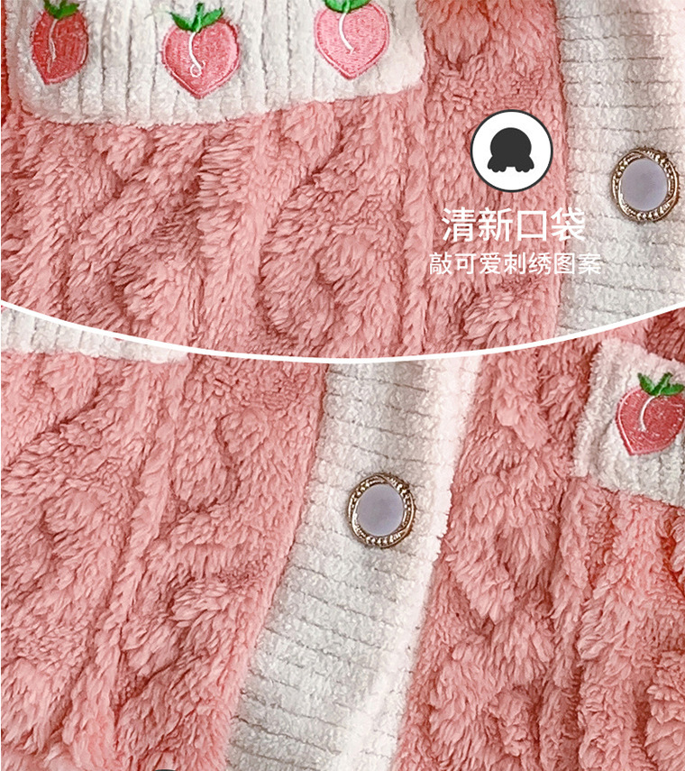 잠옷 여자의 가을과 겨울 새로운 겉옷 기모 두꺼운 따뜻한 산호 양털 플란넬 달콤한 가정 의류 세트 도매