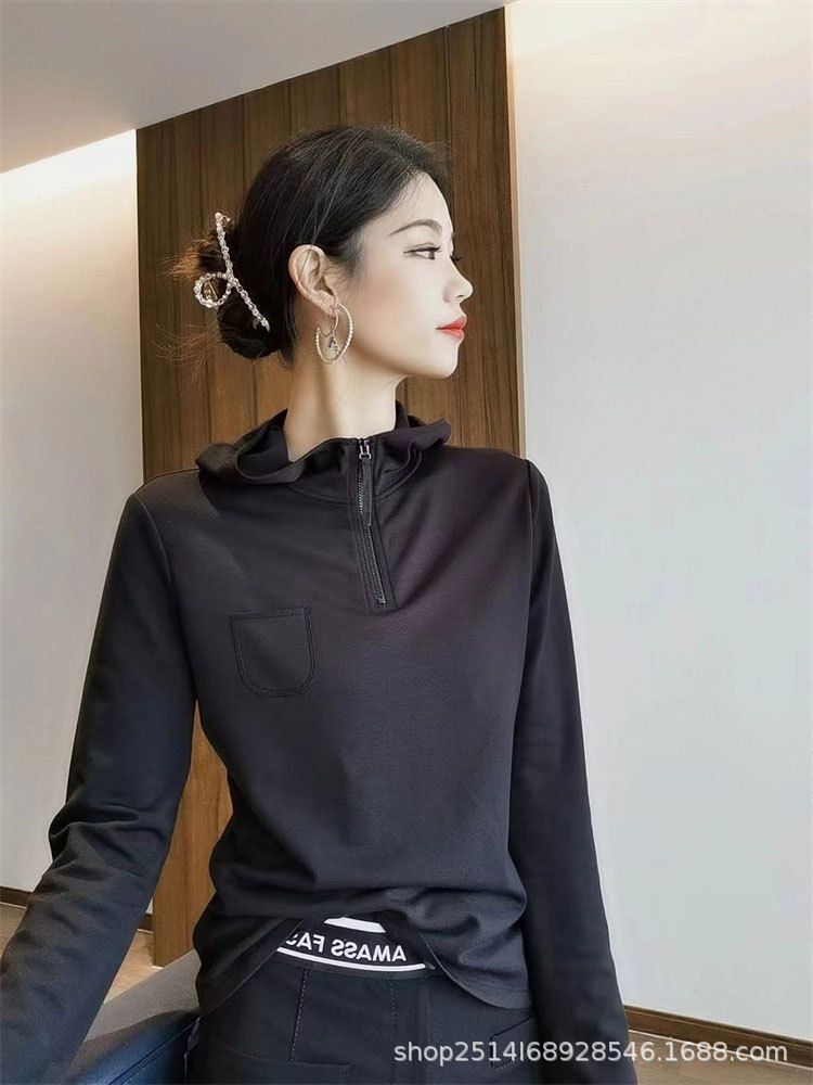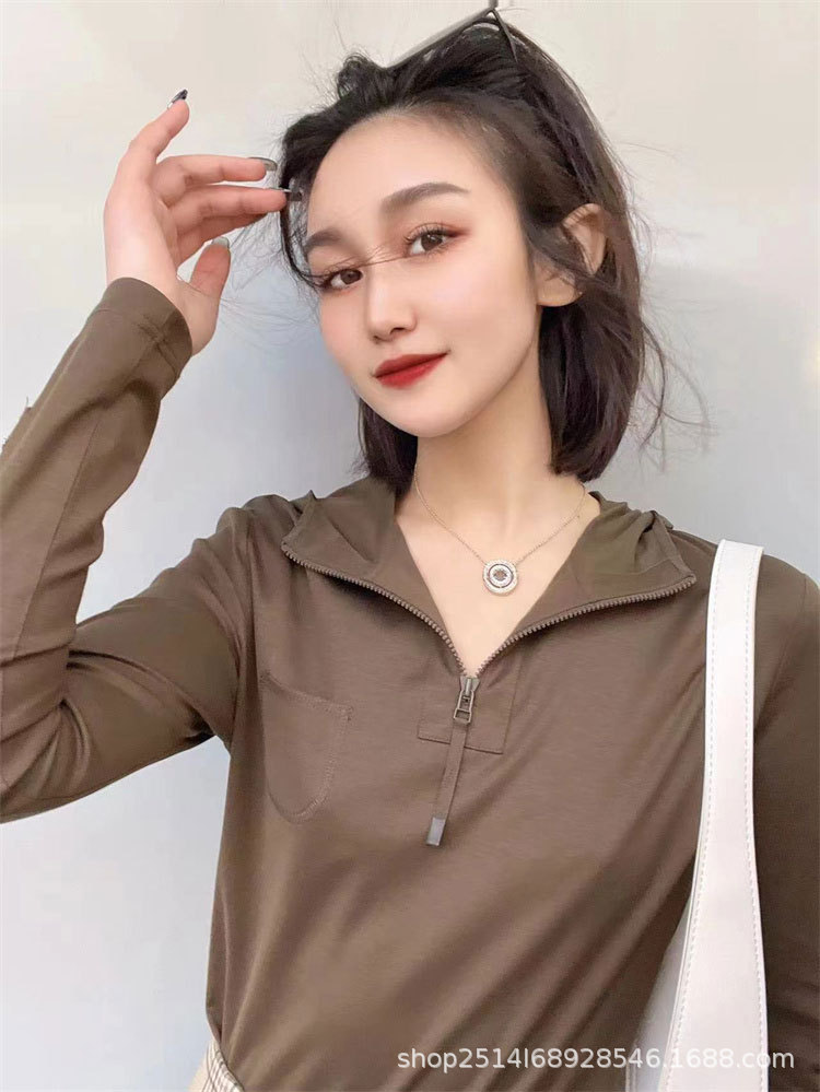 형제의 새로운 여성 의류 2023 가을 겨울 캐주얼 라이오셀 얇은 큐피드 지퍼 후드 긴 소매 티셔츠 Sweepirts스토어 가기