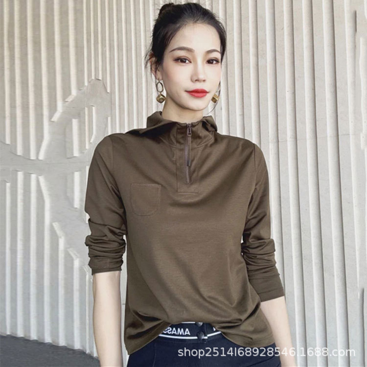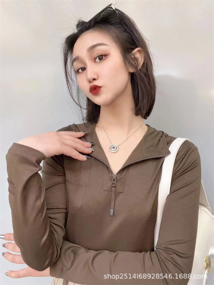 제가 새롭게 출시한 2024 가을 겨울 여성 캐주얼 리오셀 얇은 큐피드 지퍼 후드 긴팔 티셔츠 스웨트셔츠스토어 가기