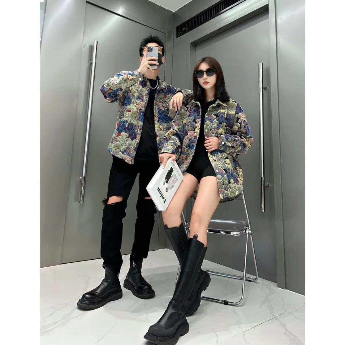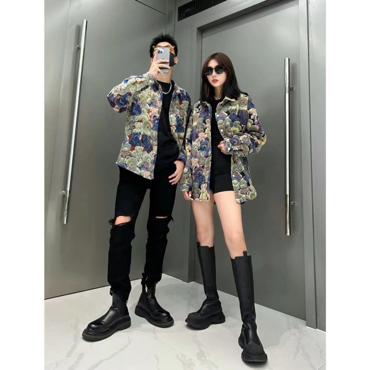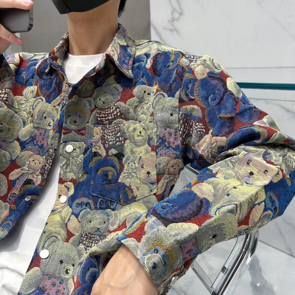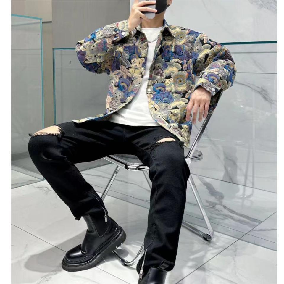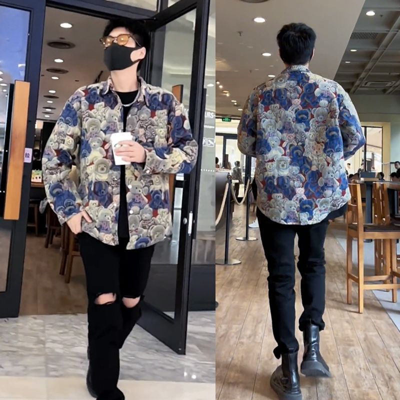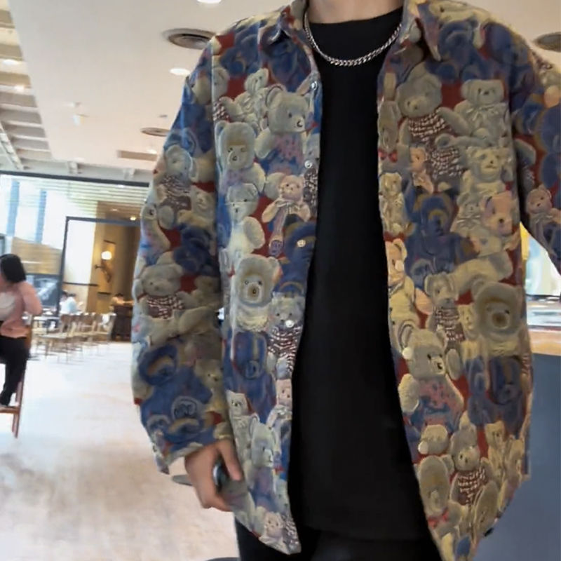 가을 남자의 중국 스타일 프린트 셔츠 잘생긴 모든 경기 긴팔 재킷 가을 곰 유행 옷깃 외부 폭발성스토어 가기