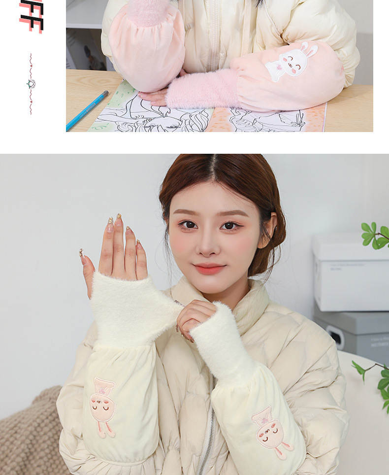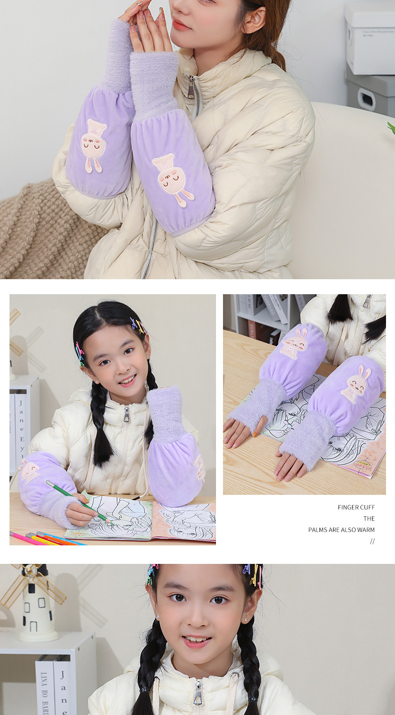 가을과 겨울 따뜻한 장갑 여성용 한국식 토끼 장갑 기모 두꺼운 단색 어린이를위한 간단한 따뜻한 장갑