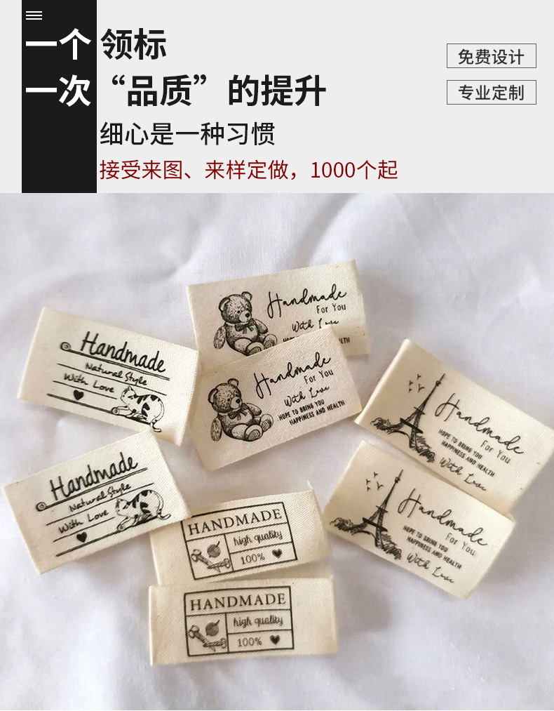 수제 천 라벨 순면 칼라 라벨 DIY 면띠 인쇄 칼라 라벨 아동복 인쇄 라벨 맞춤 인쇄 의류 상표스토어 가기