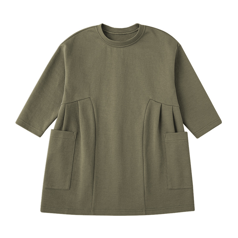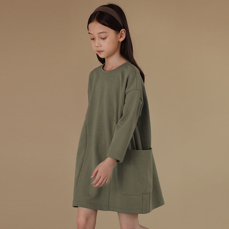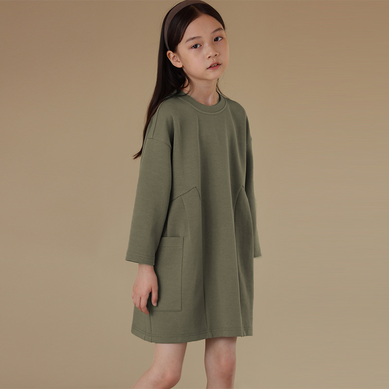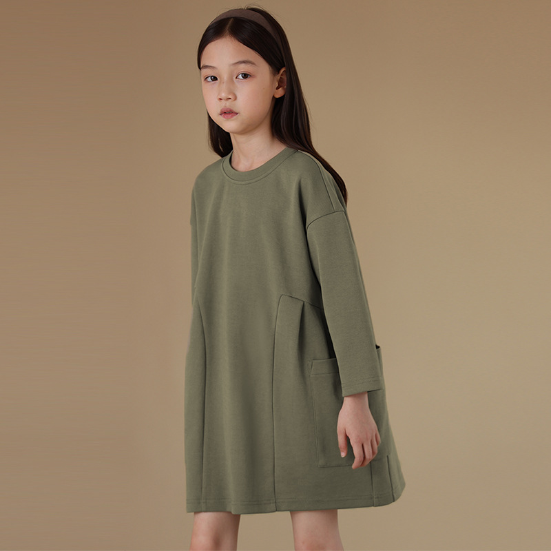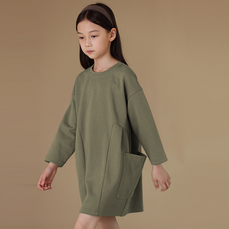 2023 가을/겨울 새로운 긴 소매 운동복 원피스 아동복 일본 크루넥 주름 바느질 디자인 큰 어린이 치마스토어 가기