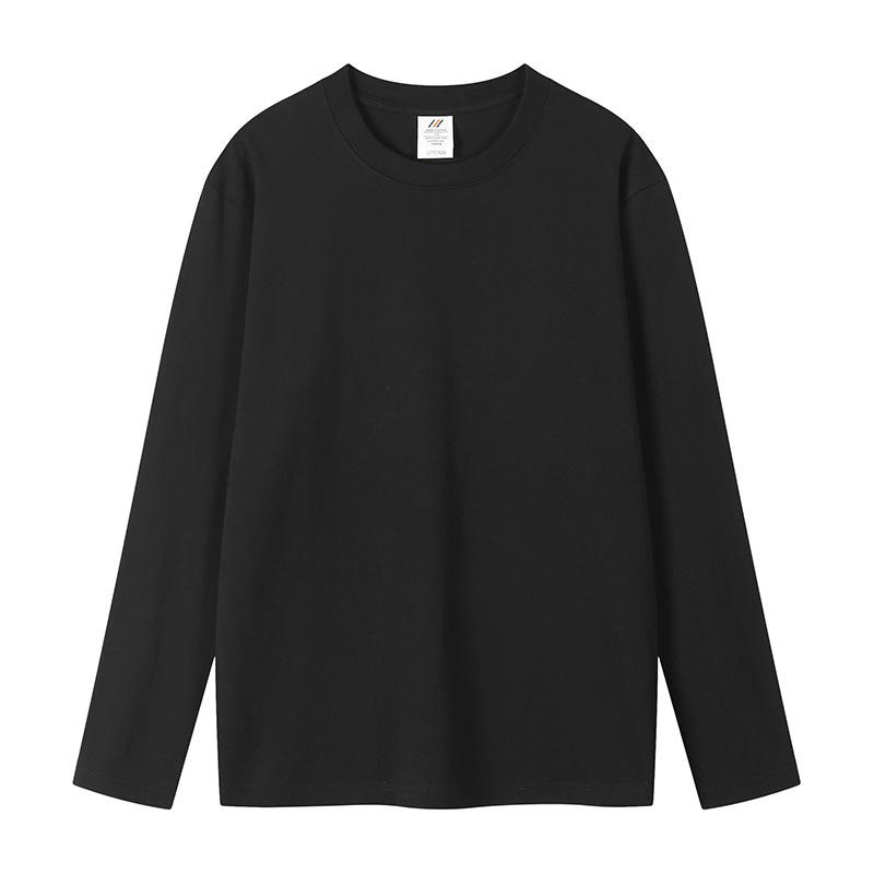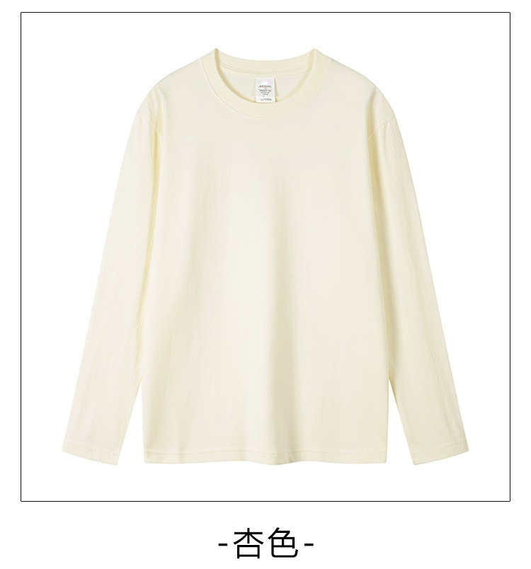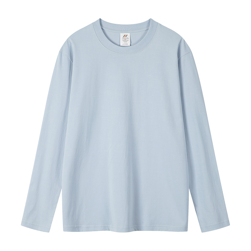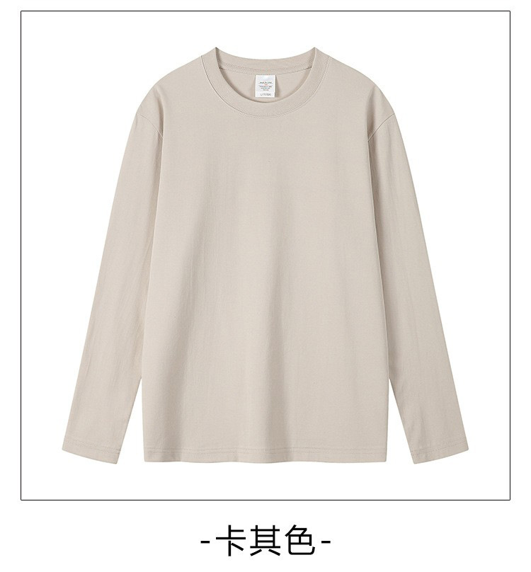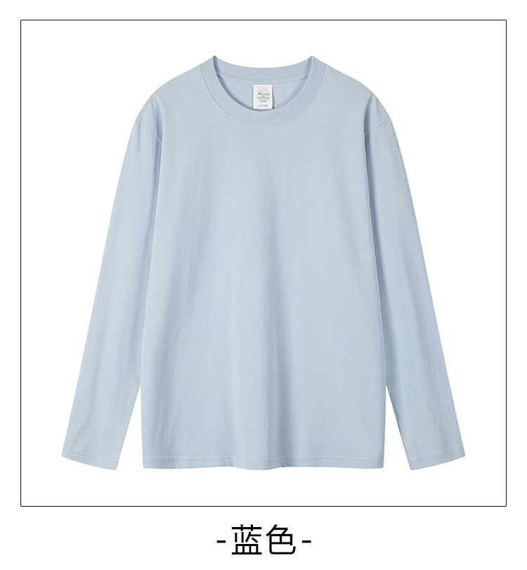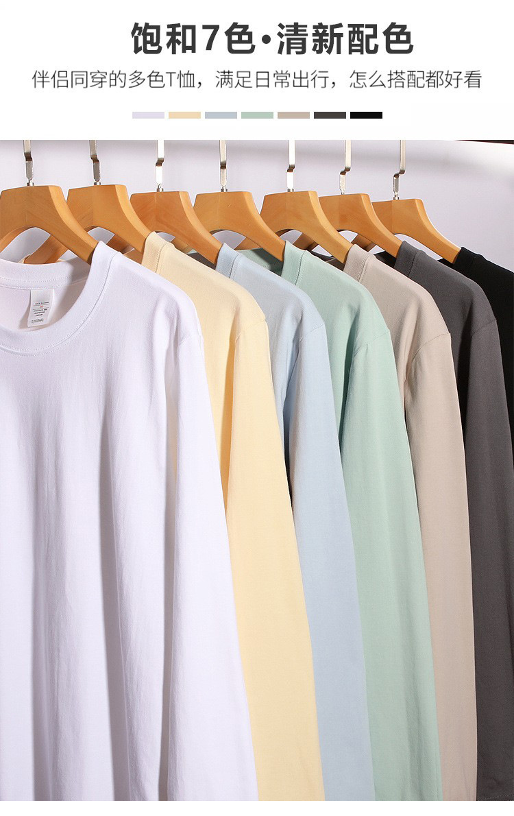 230g 여성을위한 간단한 내부 레이어링 셔츠 가을 긴팔 순수 코튼 오른쪽 어깨 티셔츠 남성 라운드 넥 솔리드 컬러 커플 의류 도매