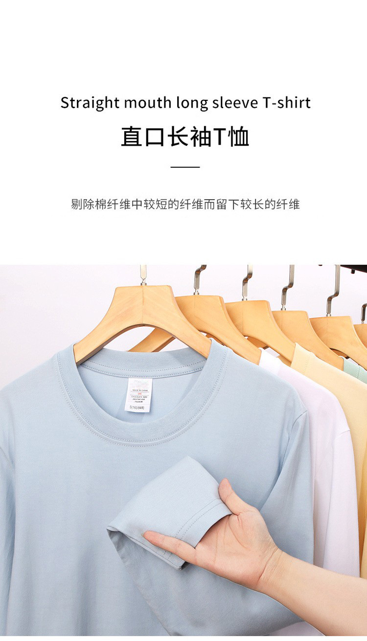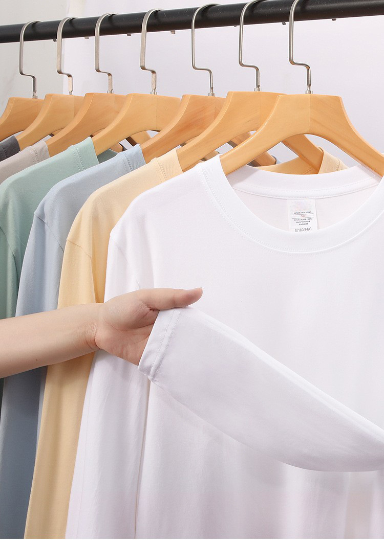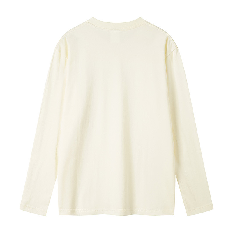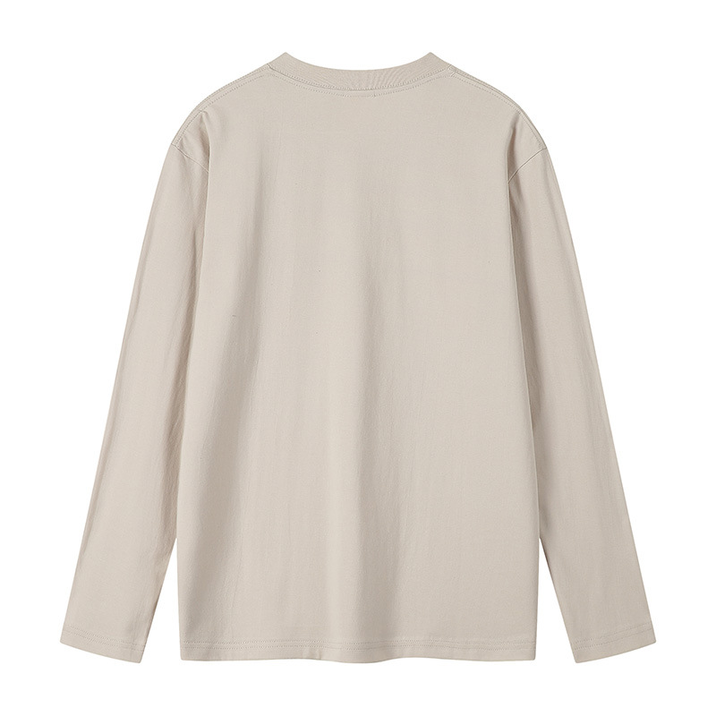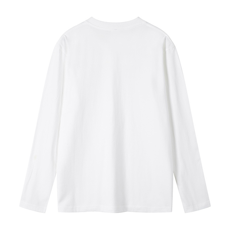 230g 여성을위한 간단한 내부 레이어링 셔츠 가을 긴팔 순수 코튼 오른쪽 어깨 티셔츠 남성 라운드 넥 솔리드 컬러 커플 의류 도매