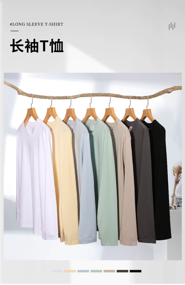 230g 여성을위한 간단한 내부 레이어링 셔츠 가을 긴팔 순수 코튼 오른쪽 어깨 티셔츠 남성 라운드 넥 솔리드 컬러 커플 의류 도매스토어 가기