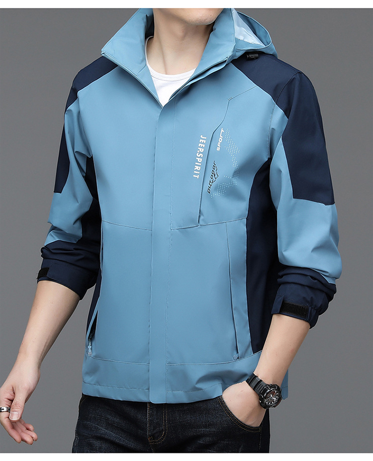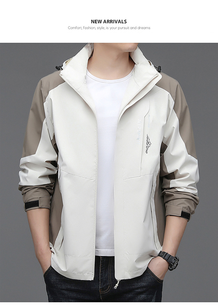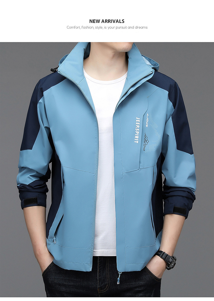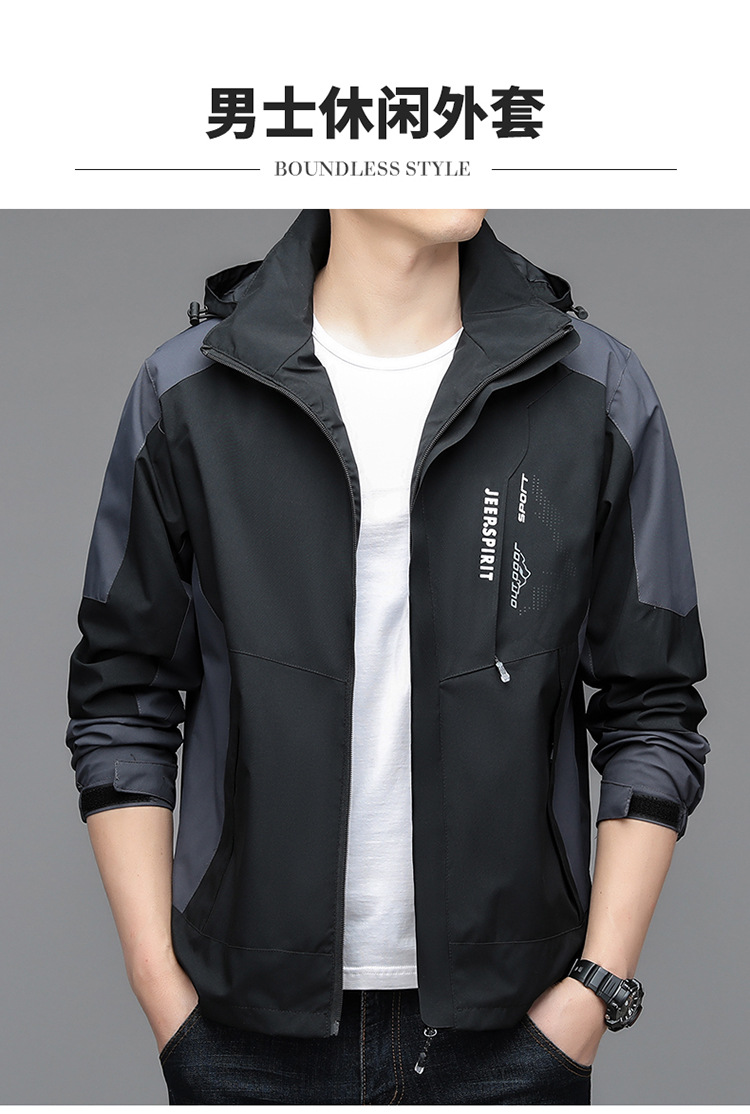 JEEPSPIRIT 아웃도어 어썰트 재킷 남성용 봄과 가을 분리형 캡 방풍 방수 스포츠 트렌치 코트 재킷 얇은 코트