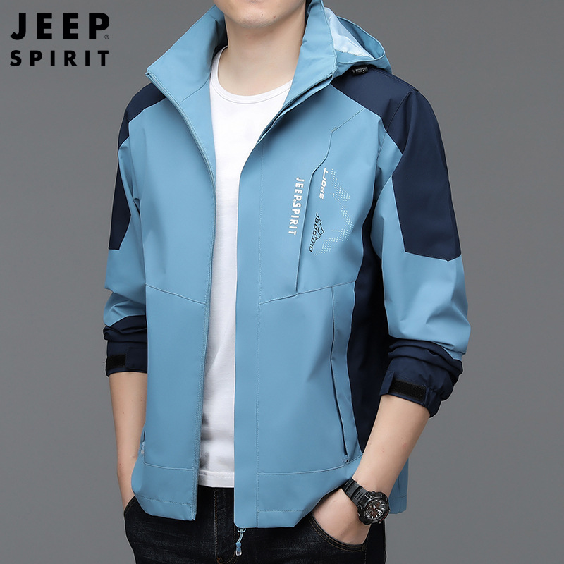 JEEPSPIRIT 아웃도어 어썰트 재킷 남성용 봄과 가을 분리형 캡 방풍 방수 스포츠 트렌치 코트 재킷 얇은 코트스토어 가기