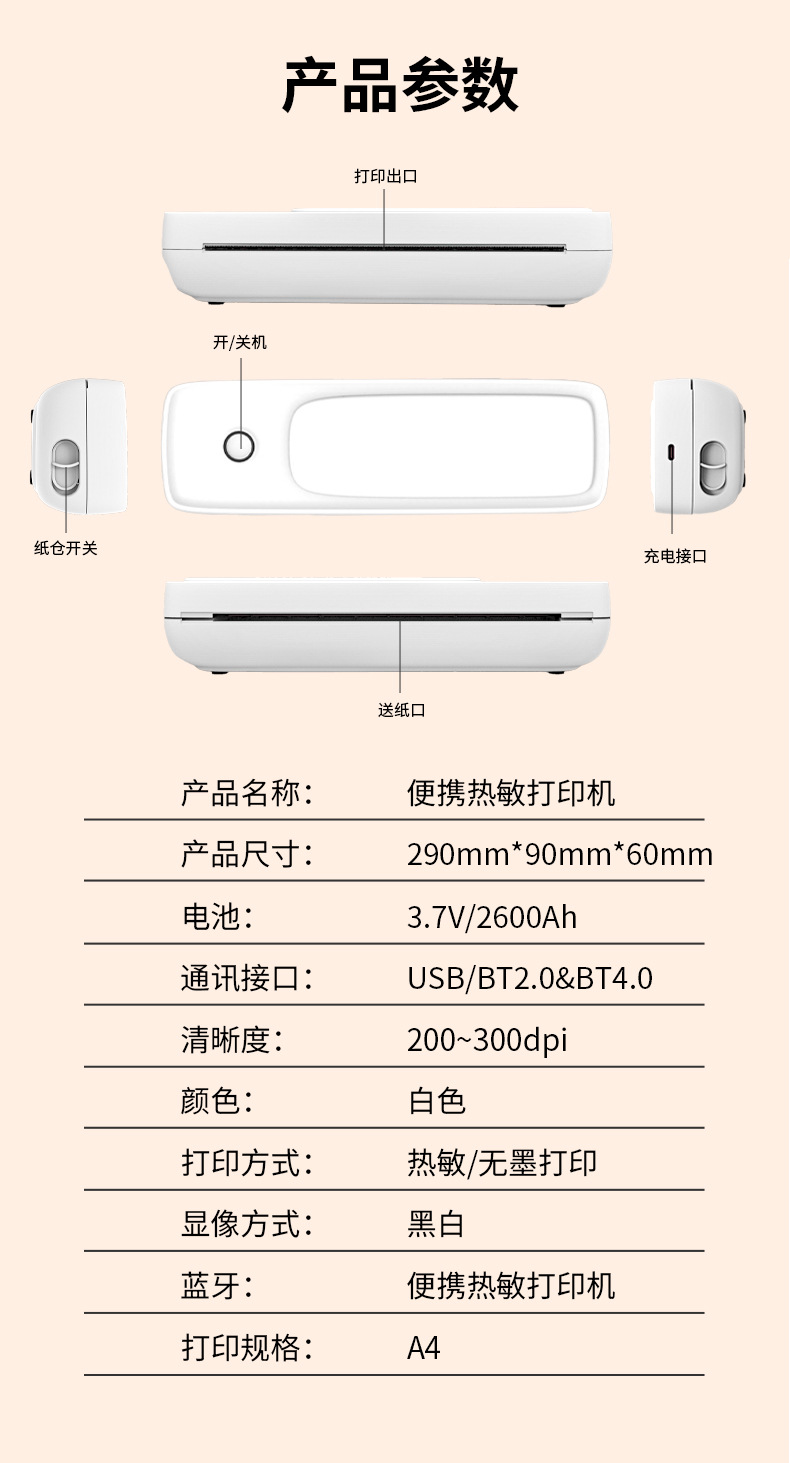무선 미니 프린터 무잉크 소형 휴대용 열 가정용 문신 라벨 기계스토어 가기