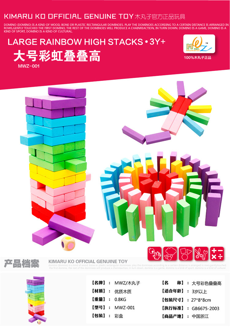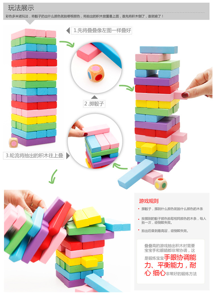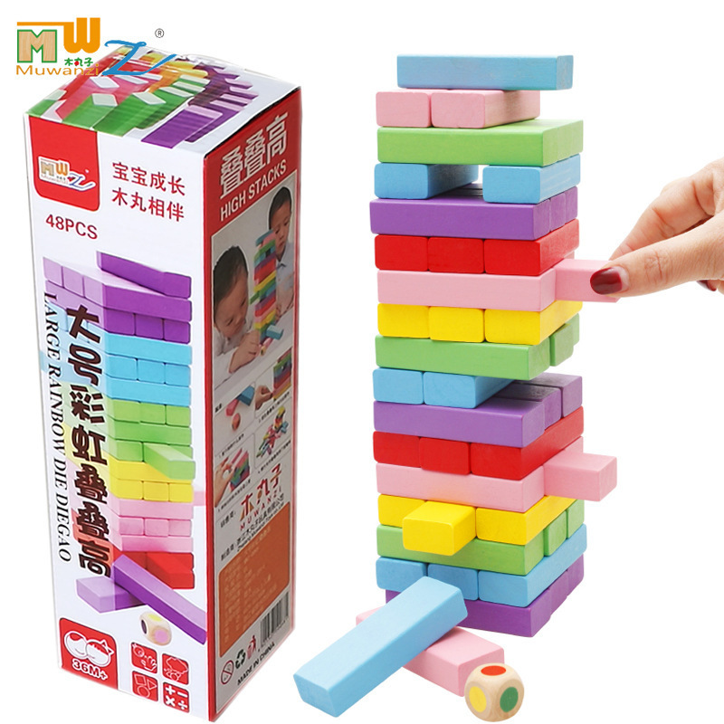 유아 교육 보조 어린이 선물 교육용 빌딩 블록 나무 장난감 레이어드 컬러 48 조각 레이어드 하이 레이어드 음악스토어 가기