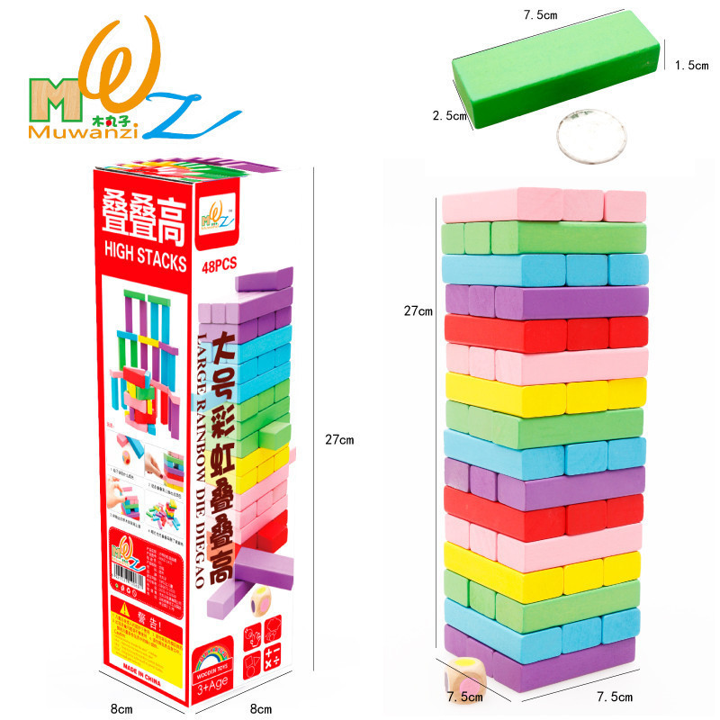 유아 교육 보조 어린이 선물 교육용 빌딩 블록 나무 장난감 레이어드 컬러 48 조각 레이어드 하이 레이어드 음악