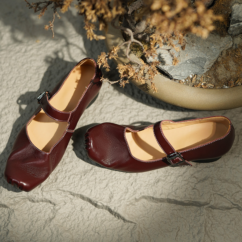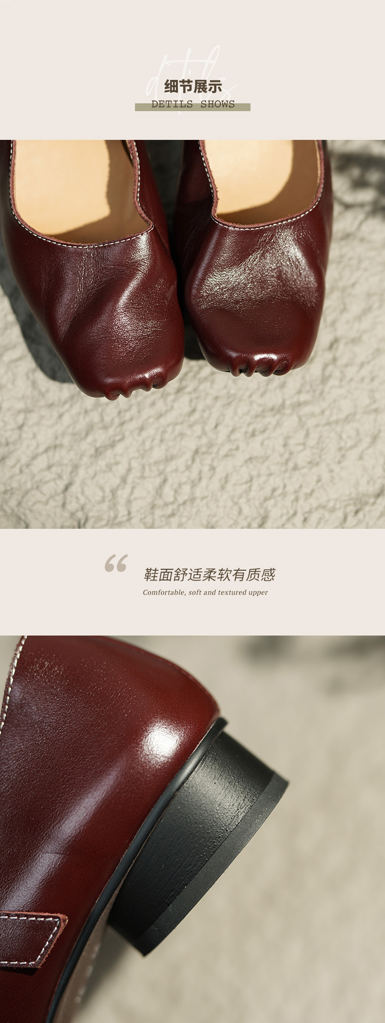 가을 2023 새로운 메리 제인 신발 여성의 얕은 입 중간 굽 신발 두꺼운 굽 신발 복고풍 탑 레이어 소가죽 신발 도매