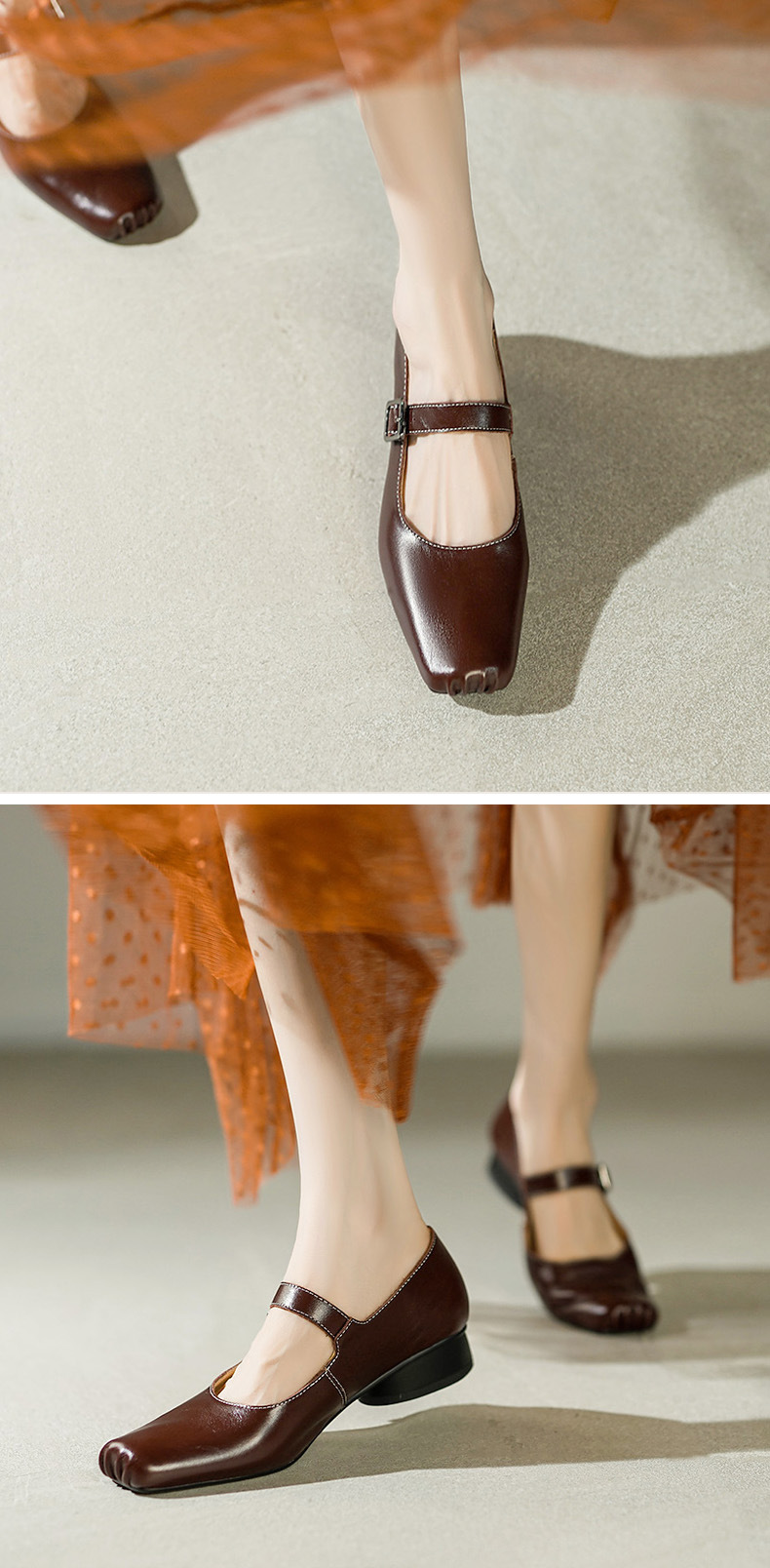가을 2023 새로운 메리 제인 신발 여성의 얕은 입 중간 굽 신발 두꺼운 굽 신발 복고풍 탑 레이어 소가죽 신발 도매스토어 가기