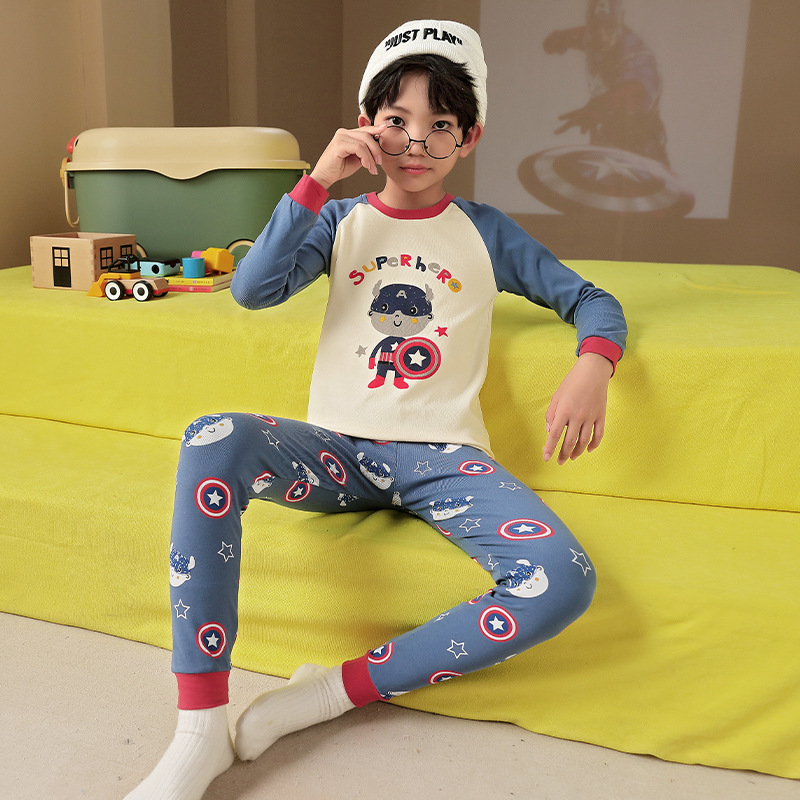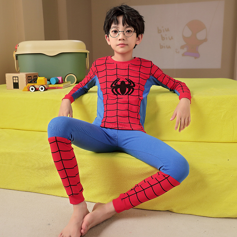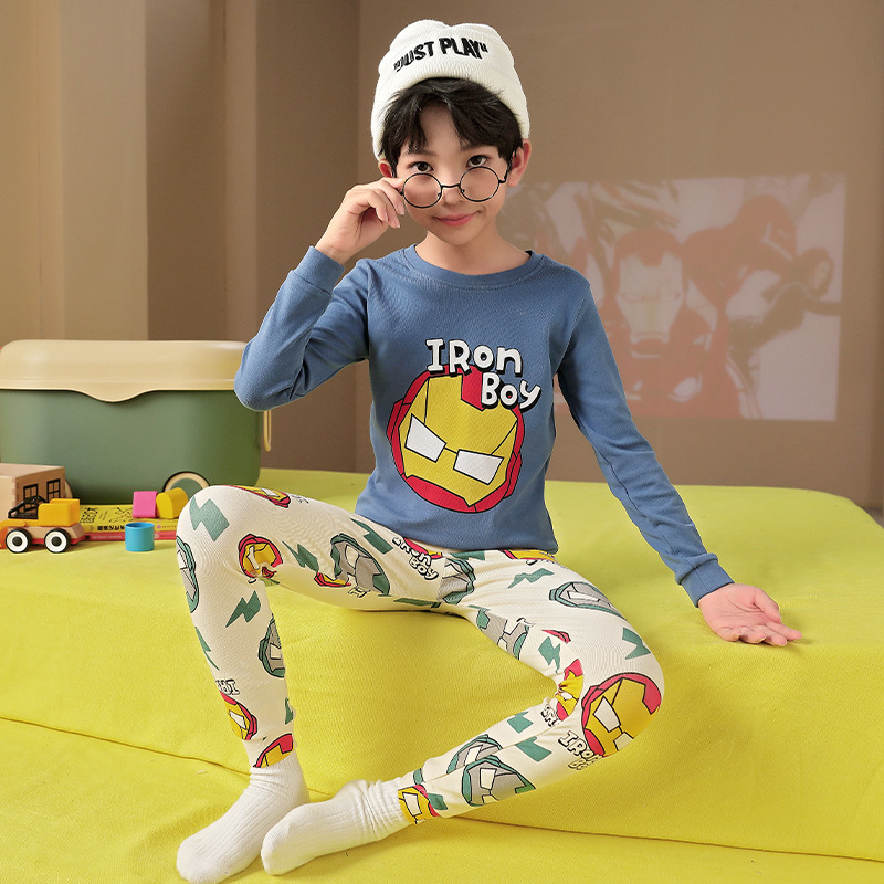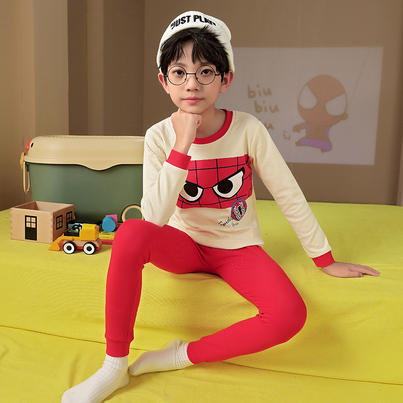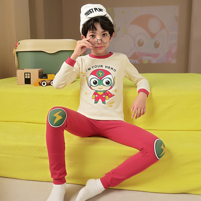 소년 속옷 세트 순면 얇은 가을 옷과 가을 바지 만화 중형 및 큰 어린이 봄과 가을 긴 소매 순면 잠옷