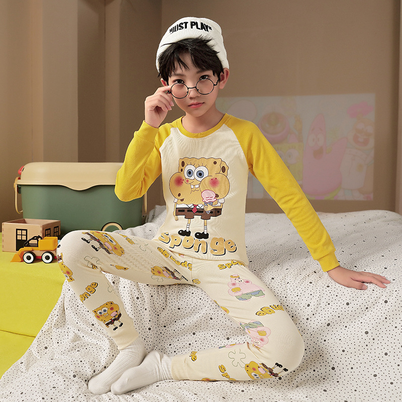 소년 속옷 세트 순면 얇은 가을 옷과 가을 바지 만화 중형 및 큰 어린이 봄과 가을 긴 소매 순면 잠옷스토어 가기