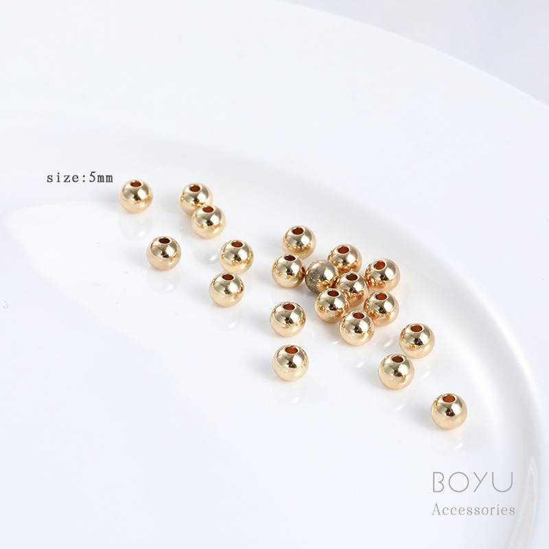 14k 도금 변색 방지 광택 금구슬 원형 구슬 도매 DIY 팔찌 액세서리 비즈 수제 루즈 비즈 쥬얼리