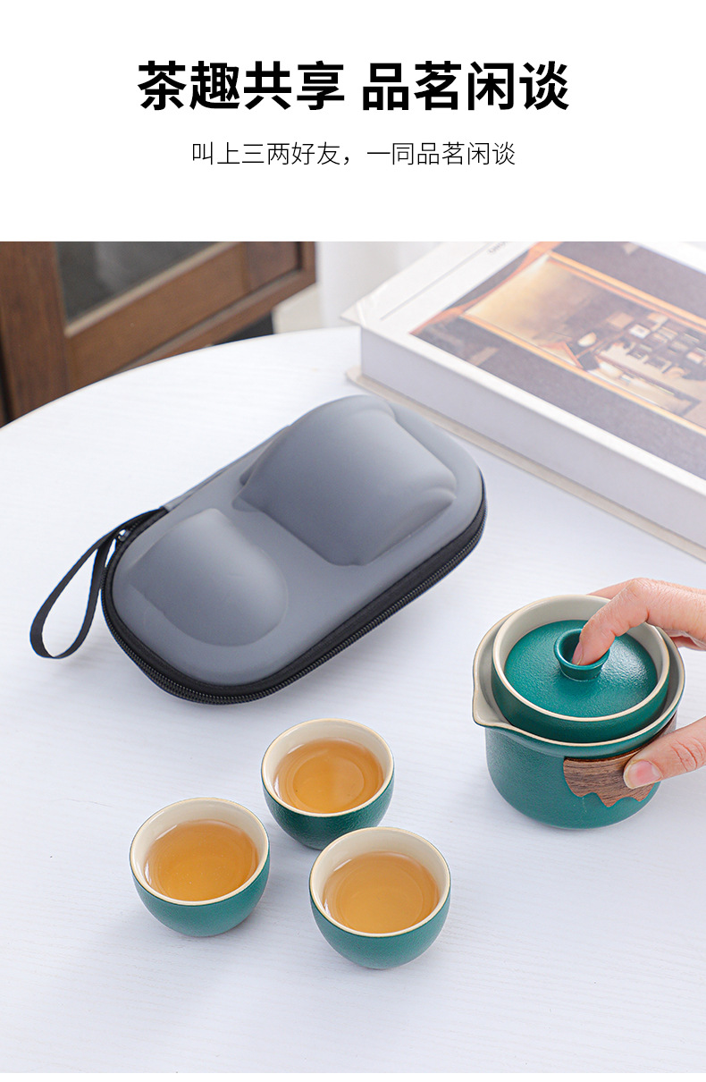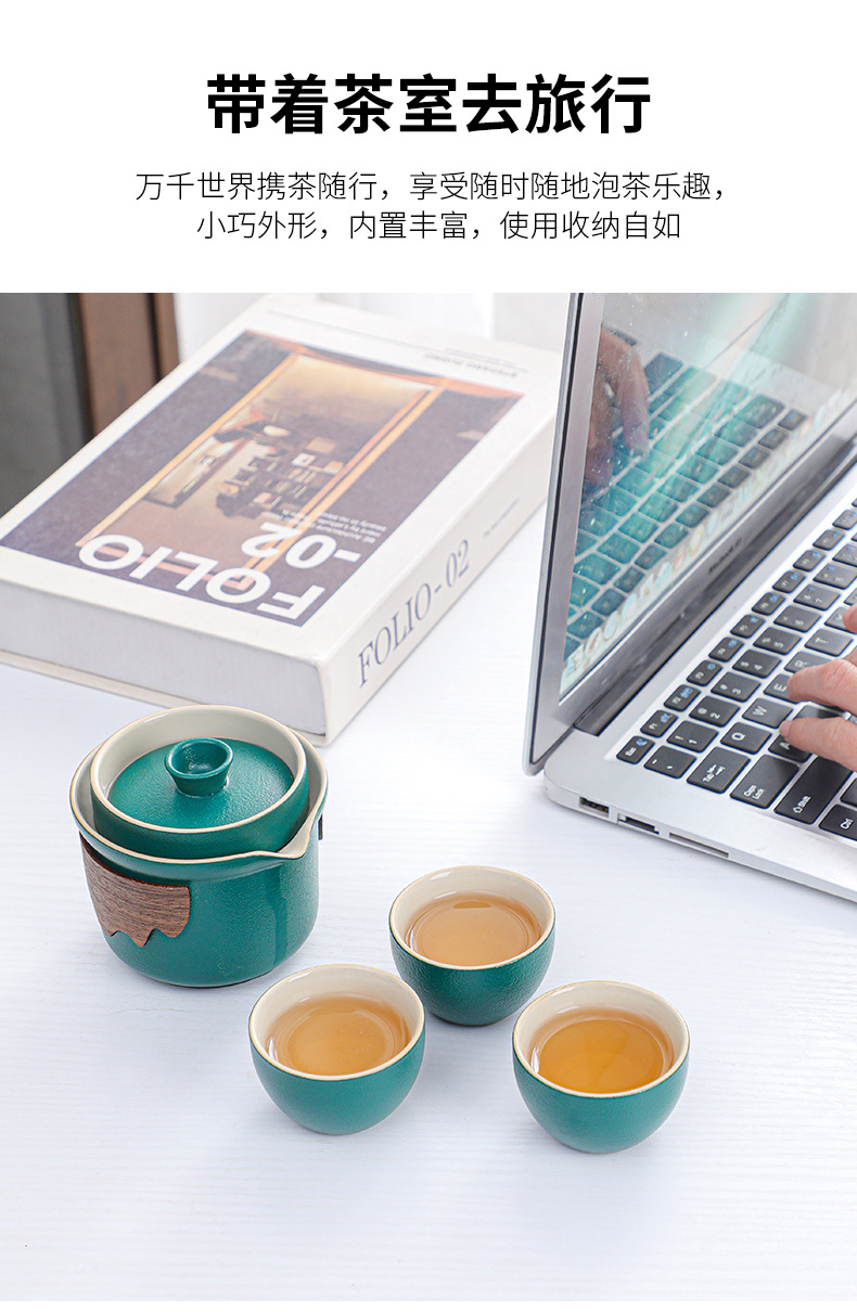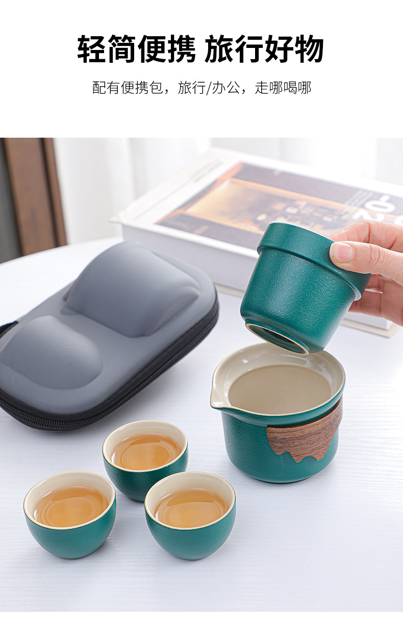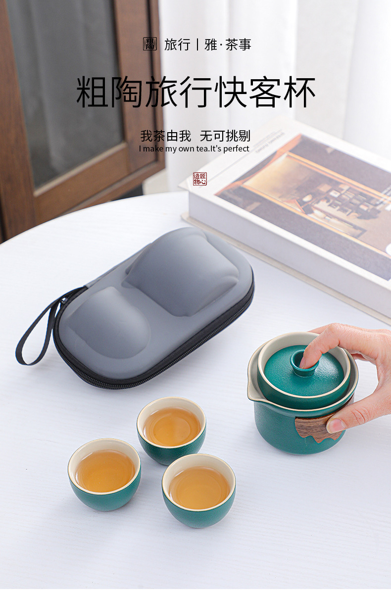 Yayun Kuaike 컵 한 냄비 세 컵 야외 차 세트 세트 세라믹 휴대용 여행 기업 동반 행사 로고