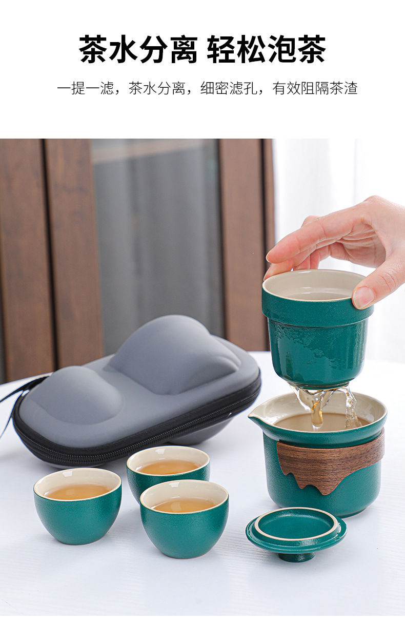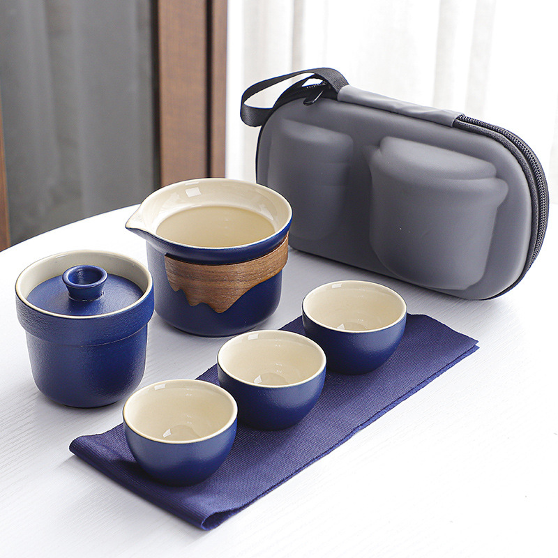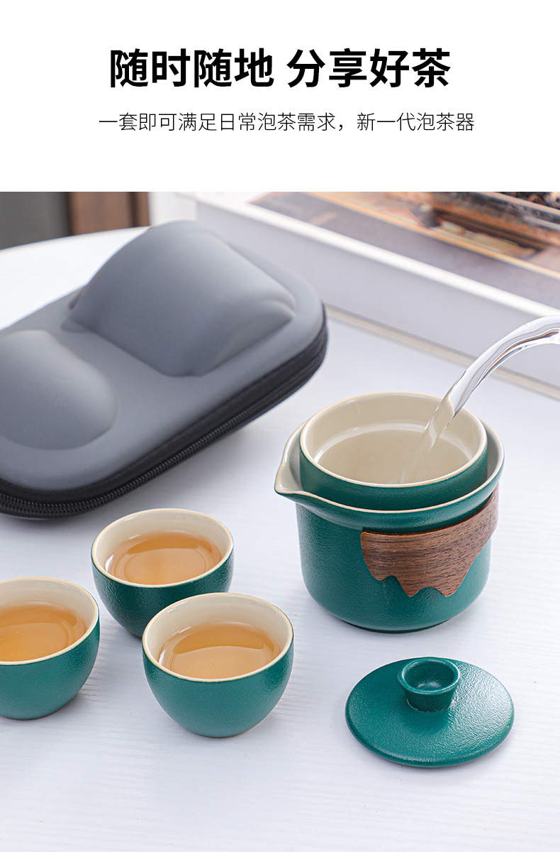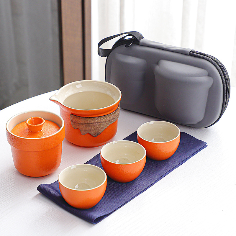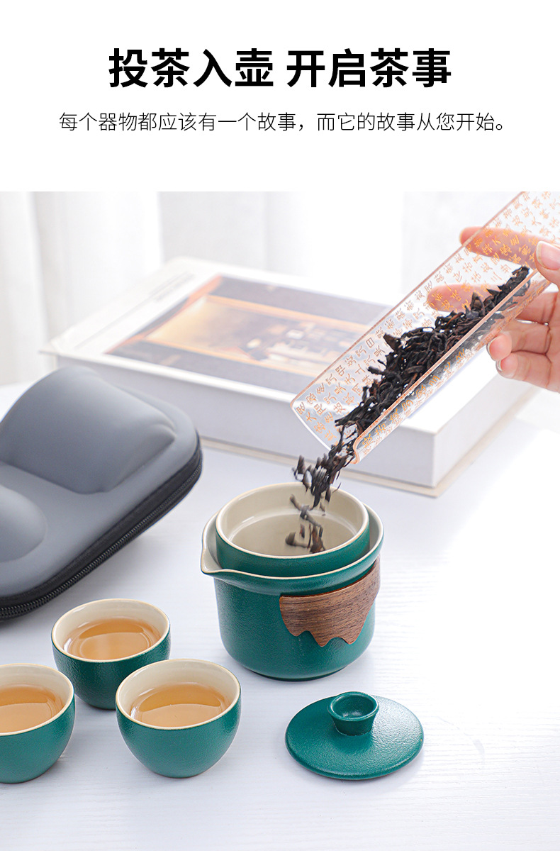 Yayun Kuaike 컵 한 냄비 세 컵 야외 차 세트 세트 세라믹 휴대용 여행 기업 동반 행사 로고