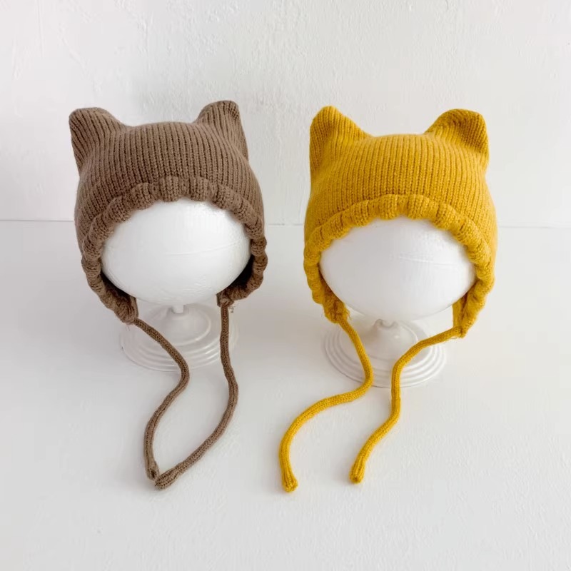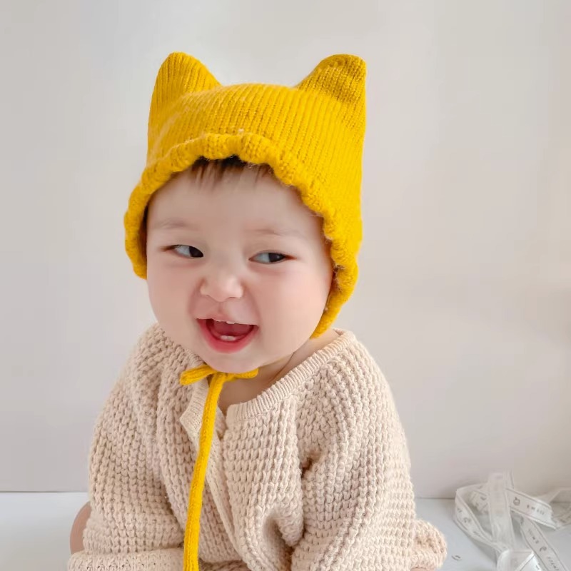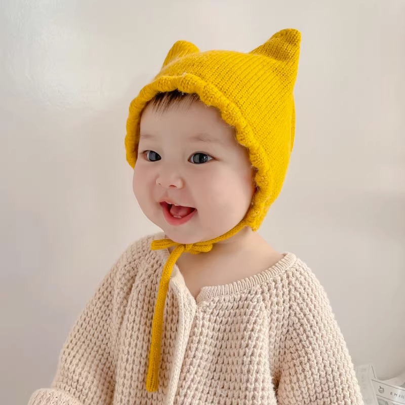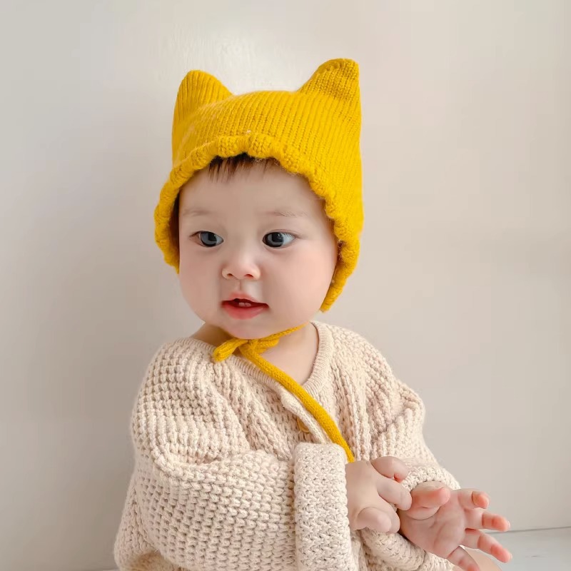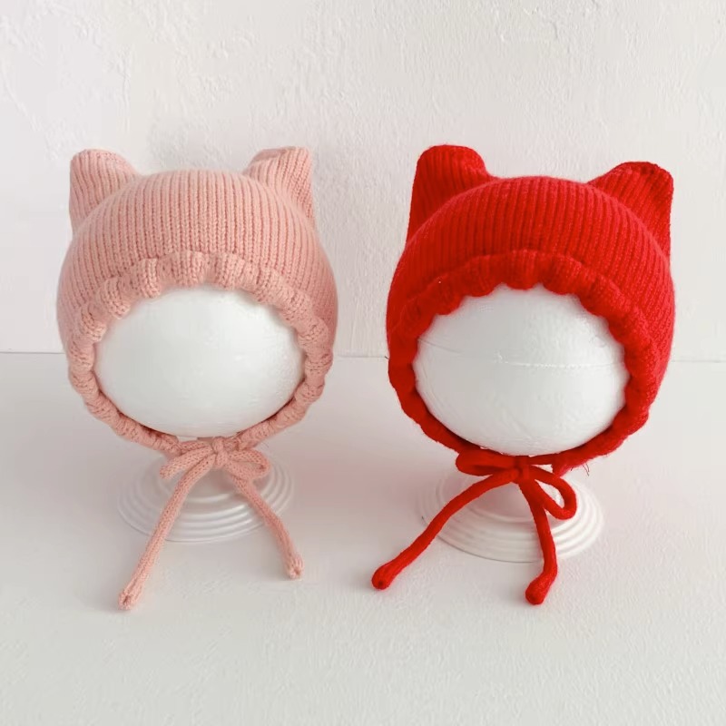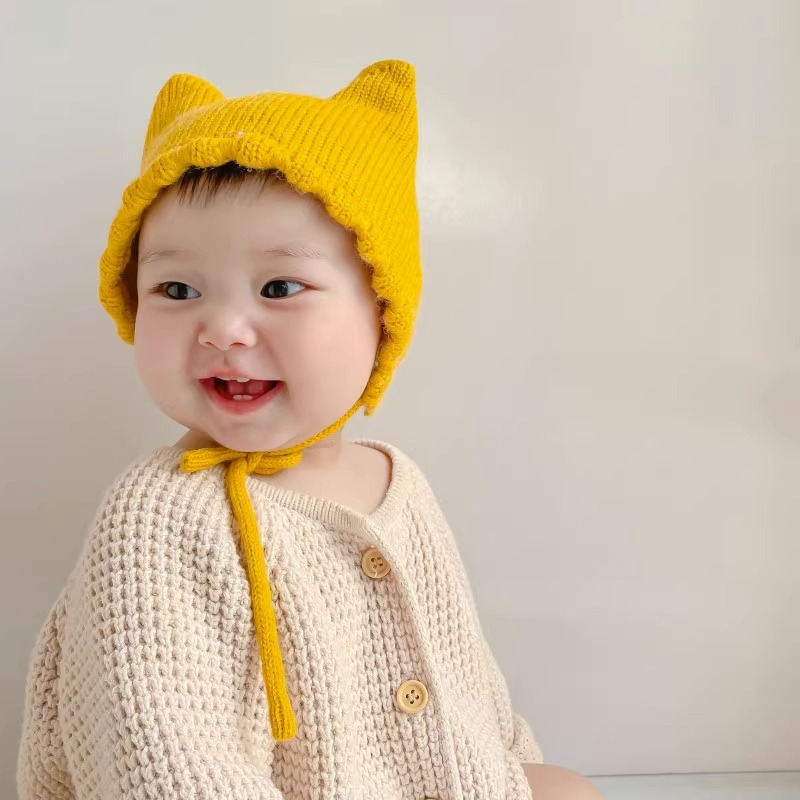 아기 모자 봄과 가을 얇은 아기 소금물 문 보호 모자 귀여운 고양이 귀 아기 따뜻한 양모 귀 보호 모자 겨울
