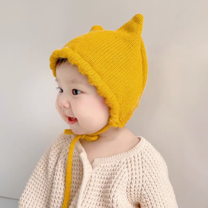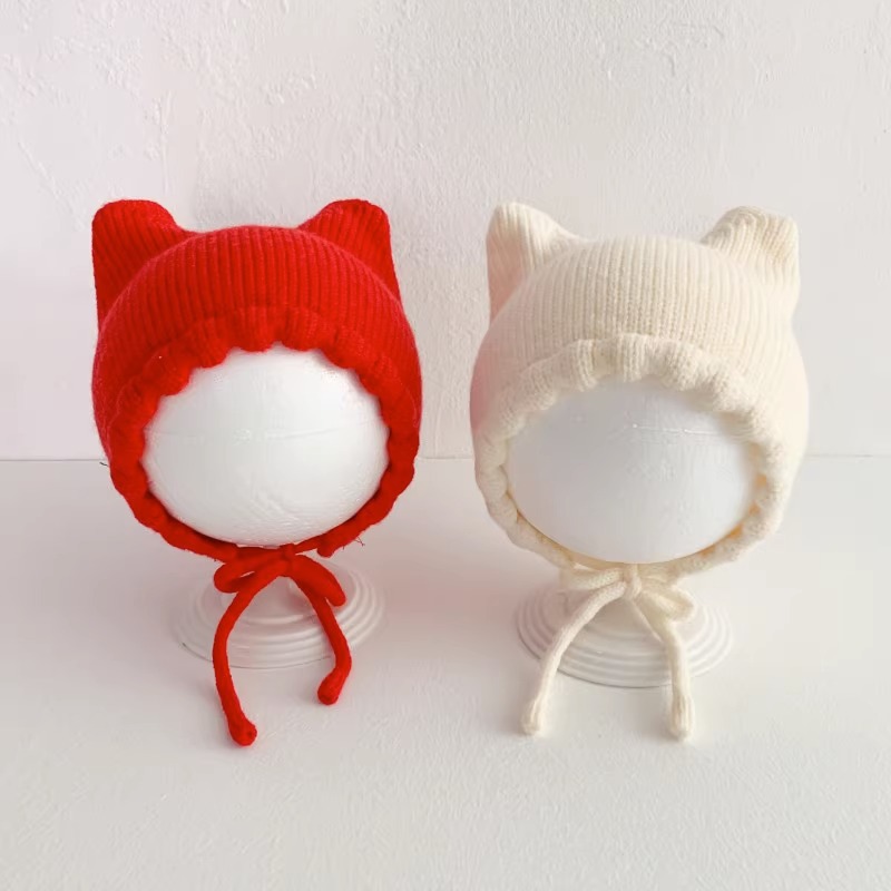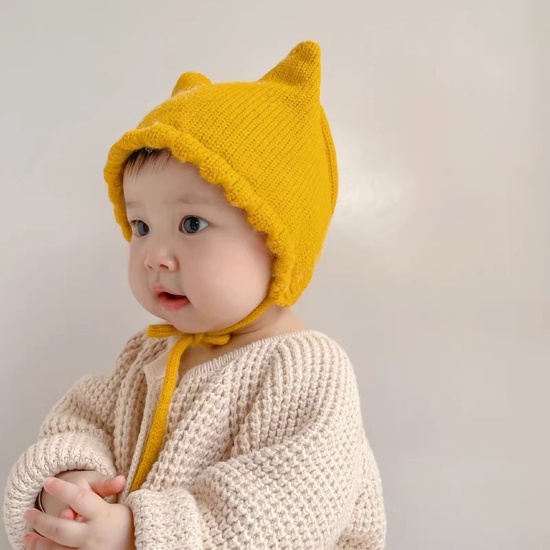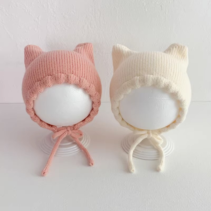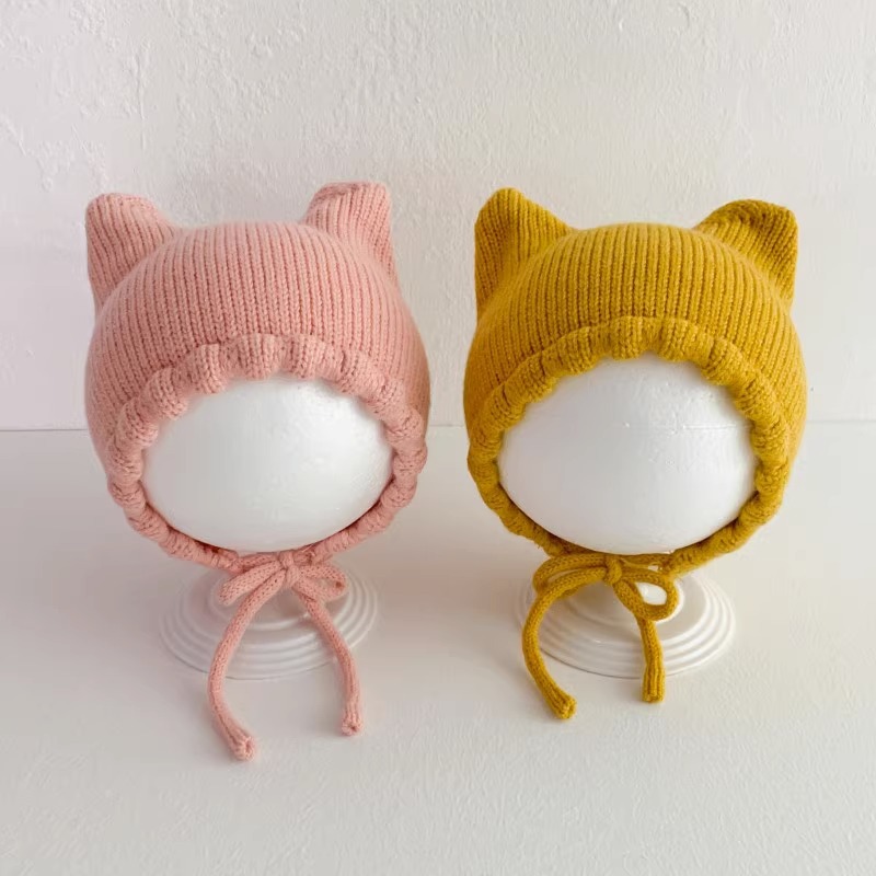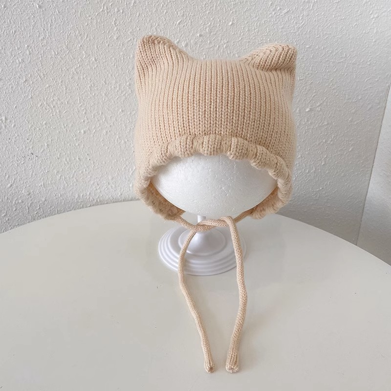 아기 모자 봄과 가을 얇은 아기 소금물 문 보호 모자 귀여운 고양이 귀 아기 따뜻한 양모 귀 보호 모자 겨울