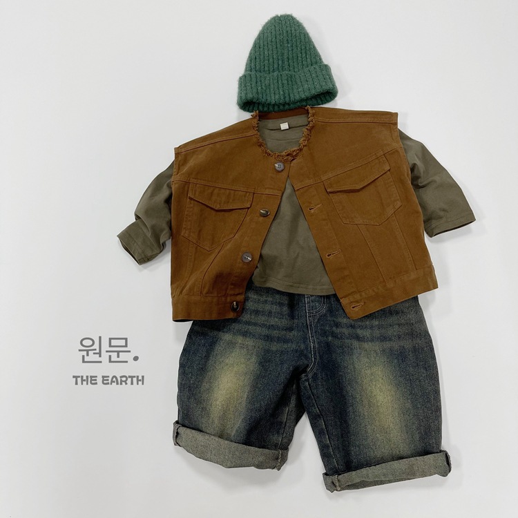어린이 조끼 가을 새로운 한국 스타일 일본식 남성과 여성 조끼 일반 휘슬 아기의 세련되게 어깨 노출 조끼 유행스토어 가기