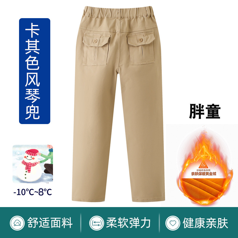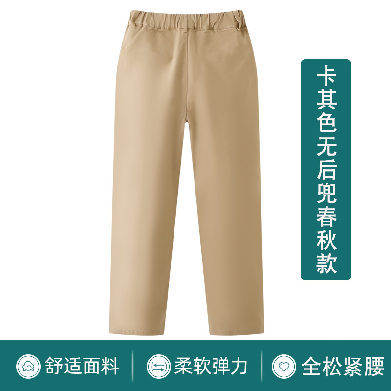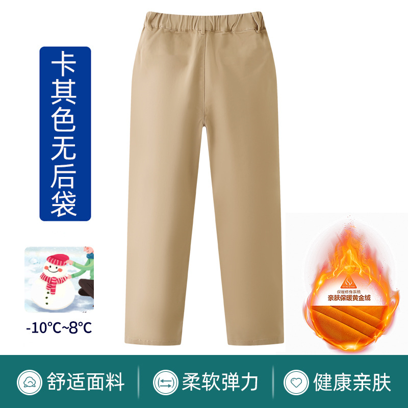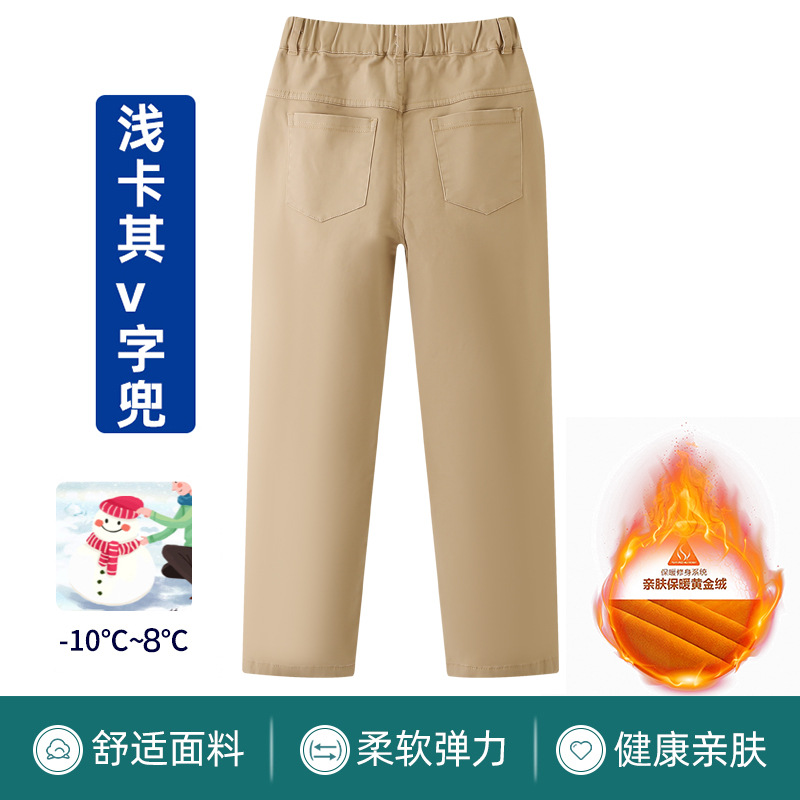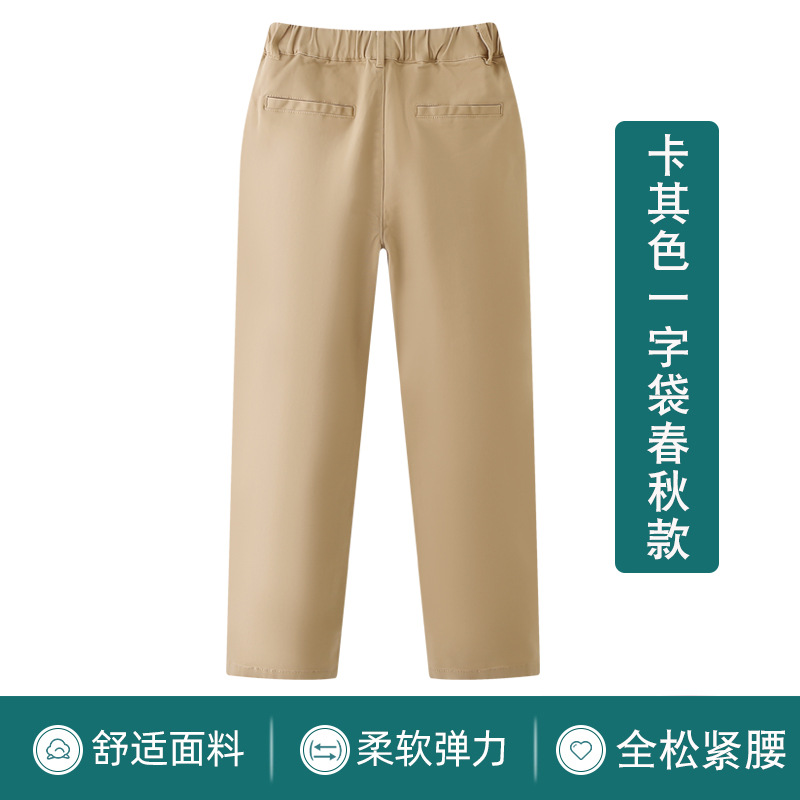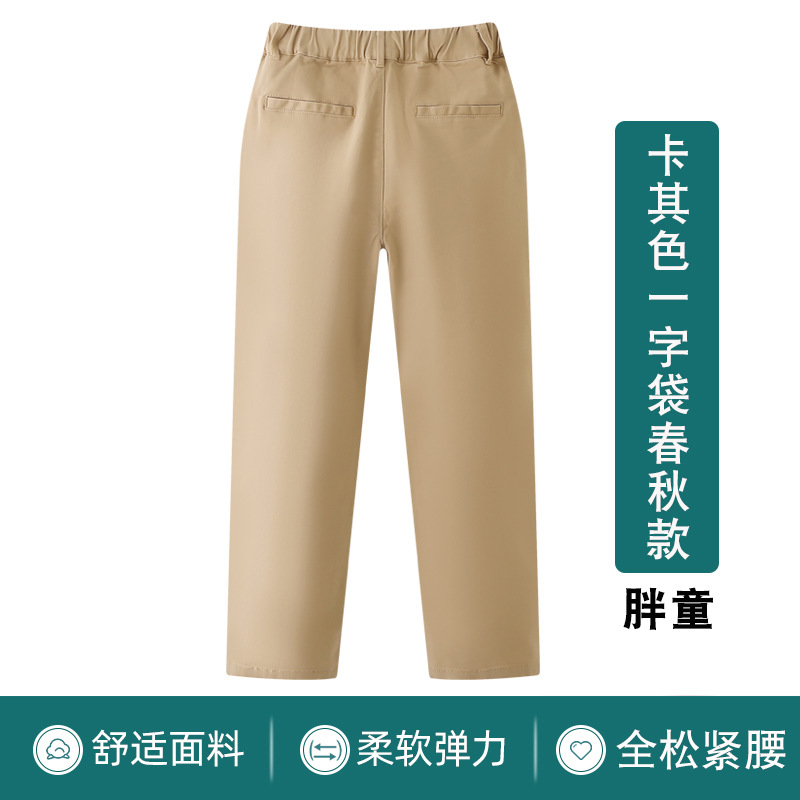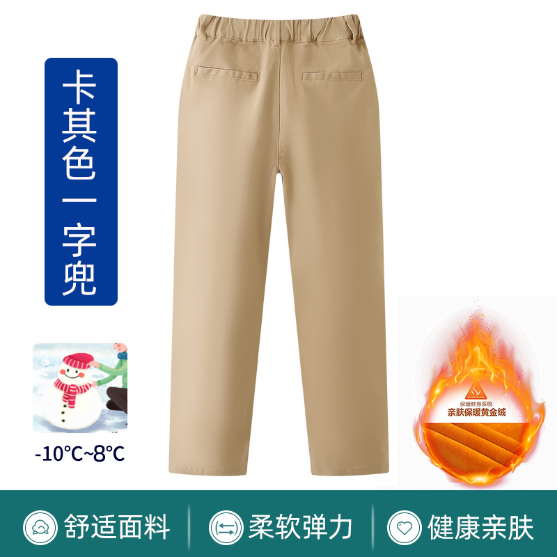 소년 카키 학교 바지 어린이 학교 바지 봄과 가을 캐주얼 바지 학생 바지 기모 탄성 허리 스트레치 바지
