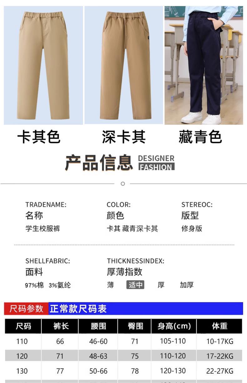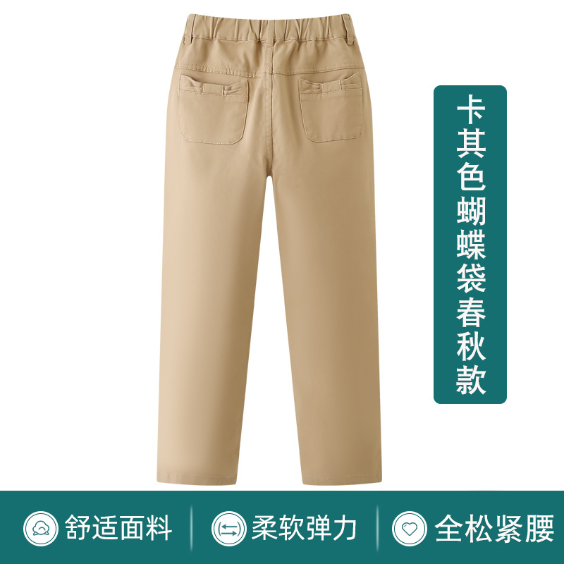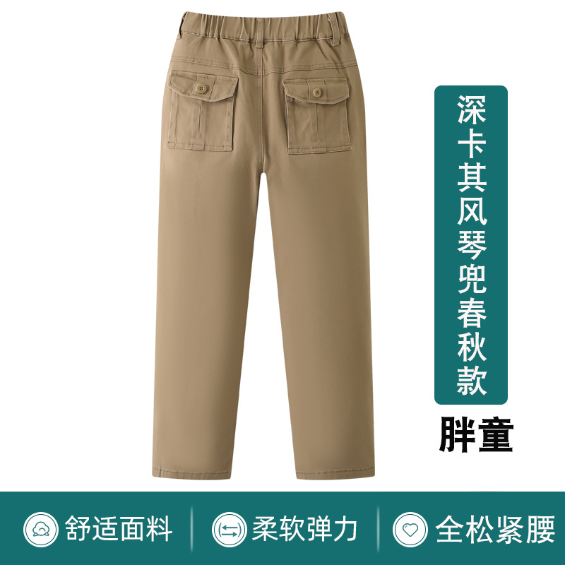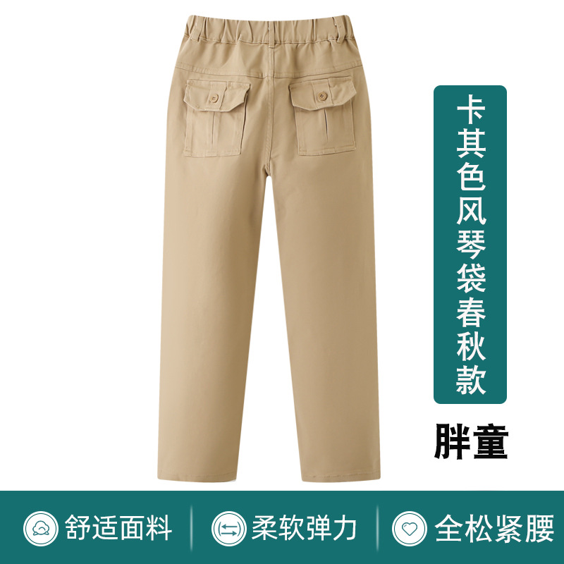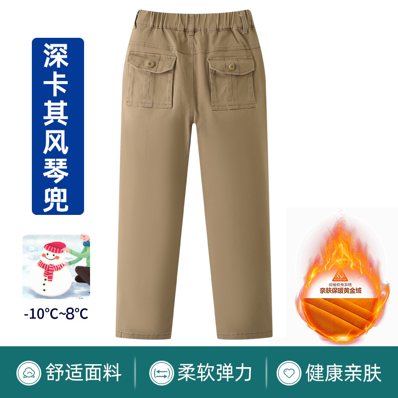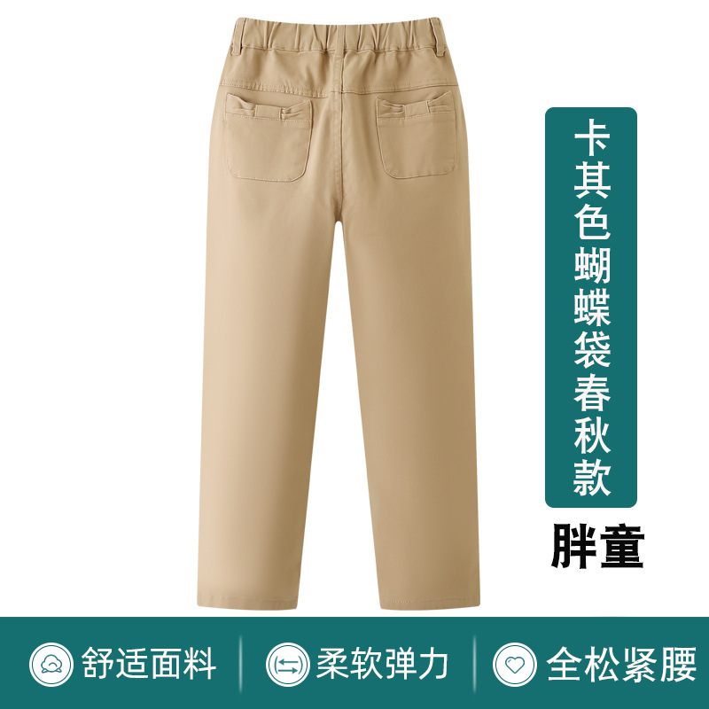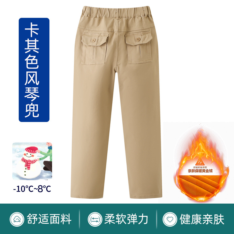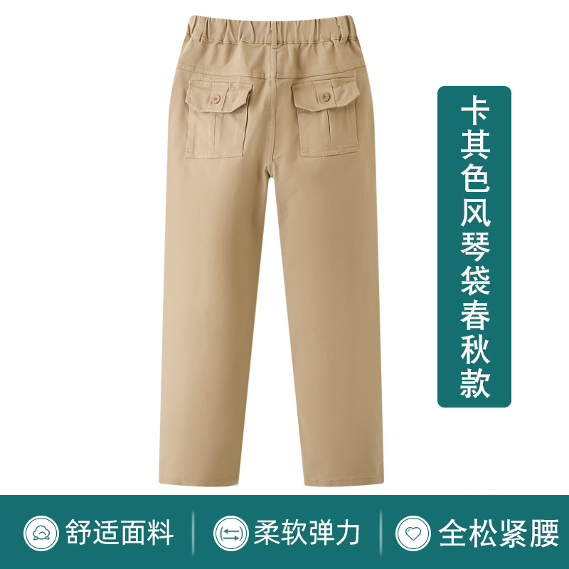 소년 카키 학교 바지 어린이 학교 바지 봄과 가을 캐주얼 바지 학생 바지 기모 탄성 허리 스트레치 바지