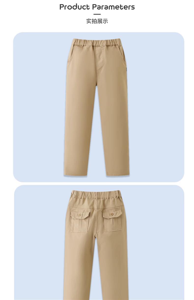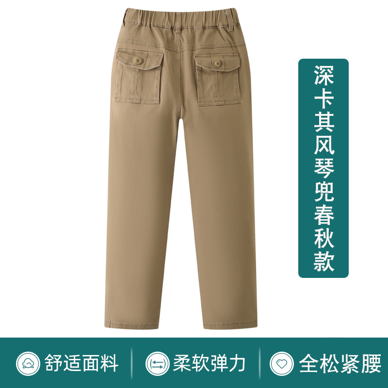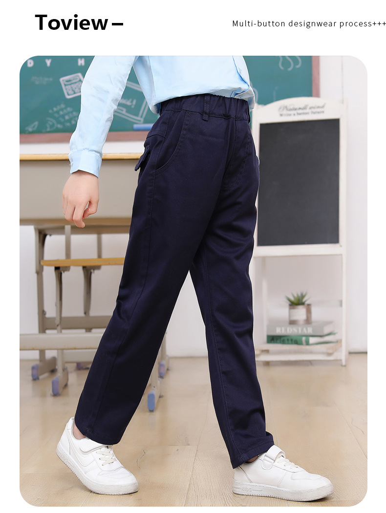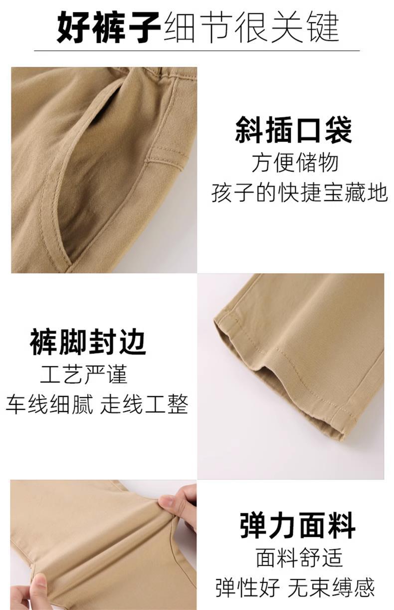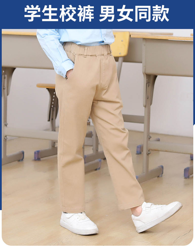 소년 카키 학교 바지 어린이 학교 바지 봄과 가을 캐주얼 바지 학생 바지 기모 탄성 허리 스트레치 바지