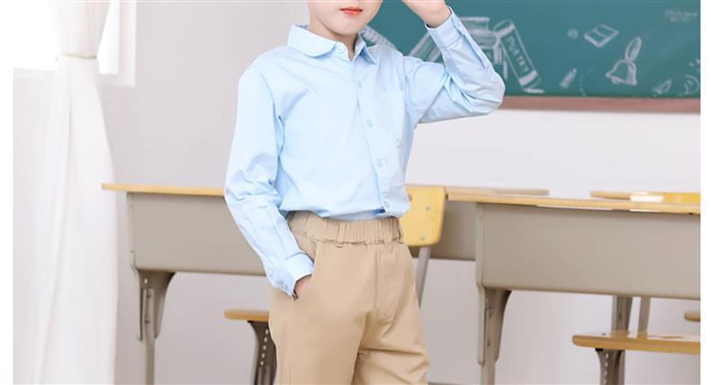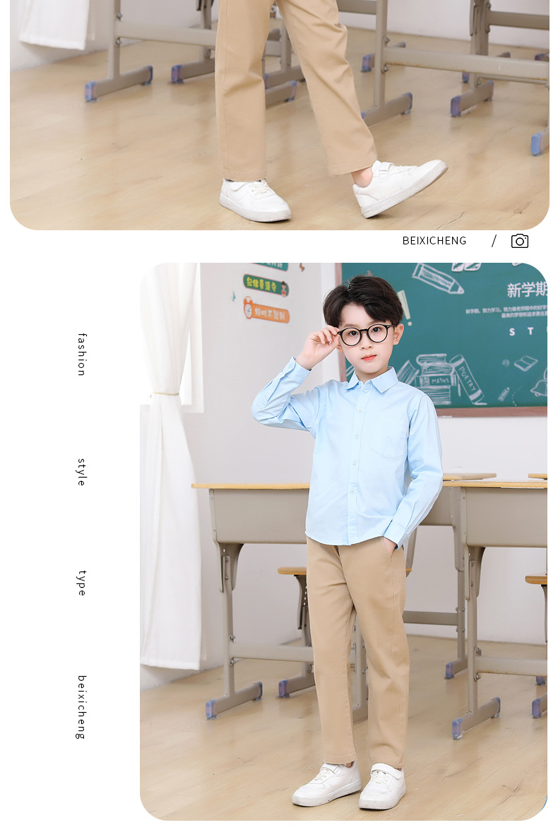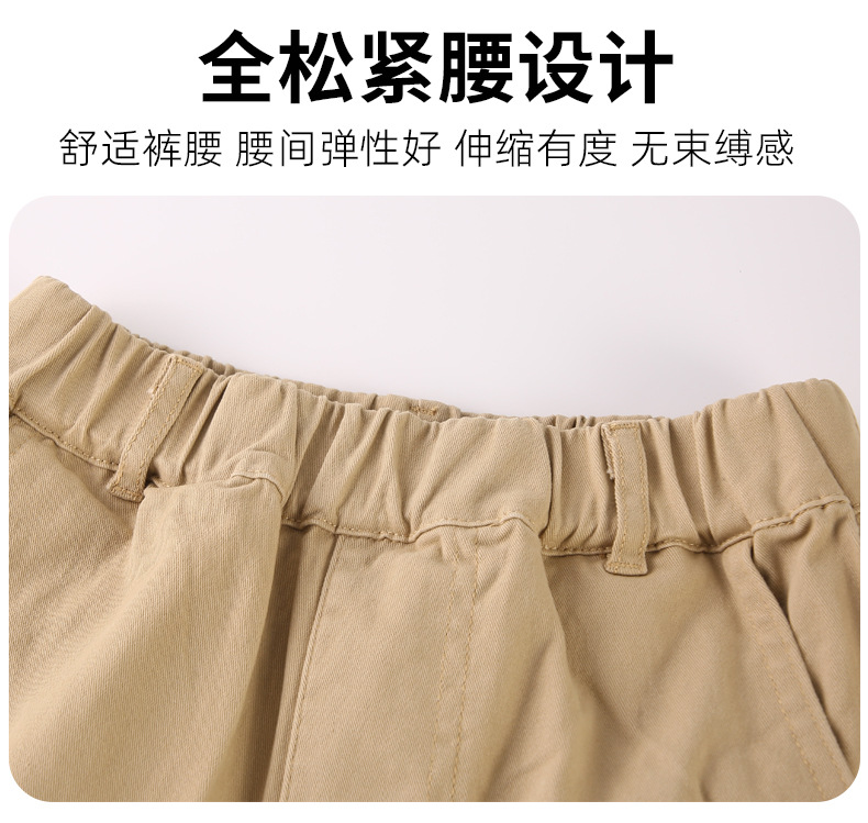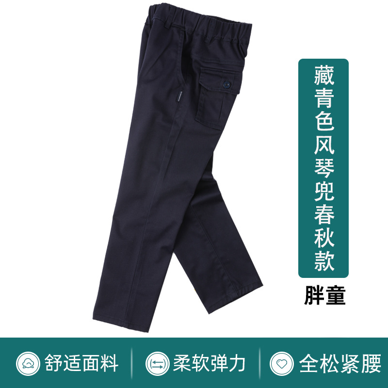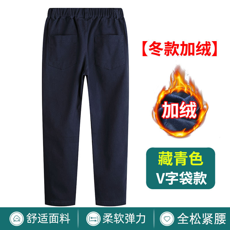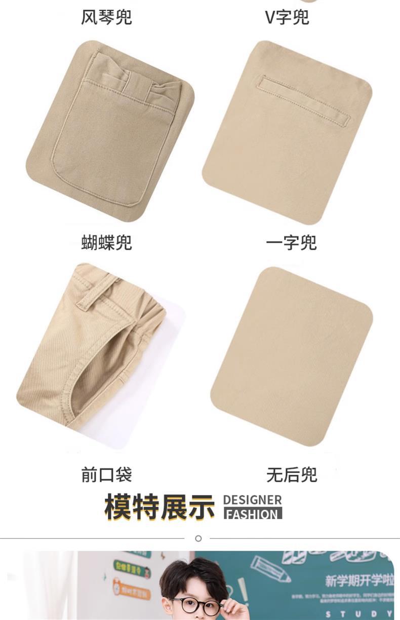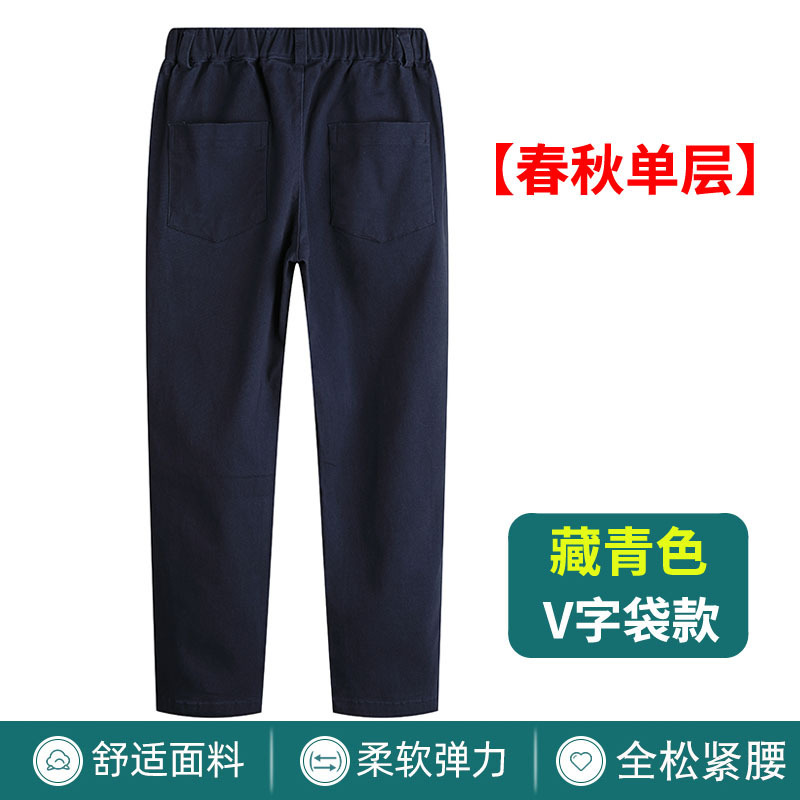 소년 카키 학교 바지 어린이 학교 바지 봄과 가을 캐주얼 바지 학생 바지 기모 탄성 허리 스트레치 바지
