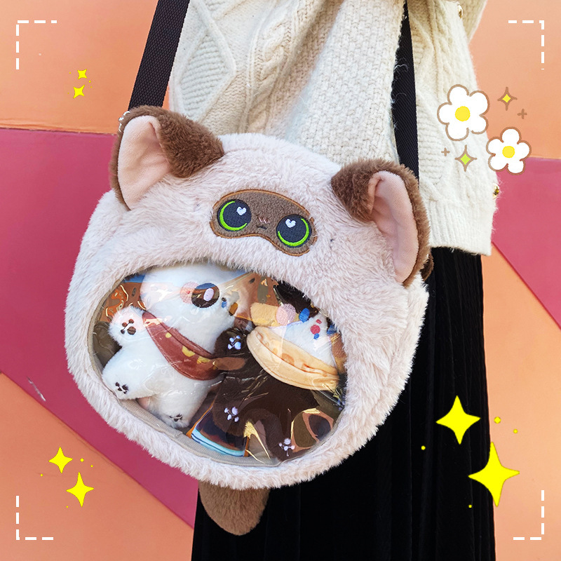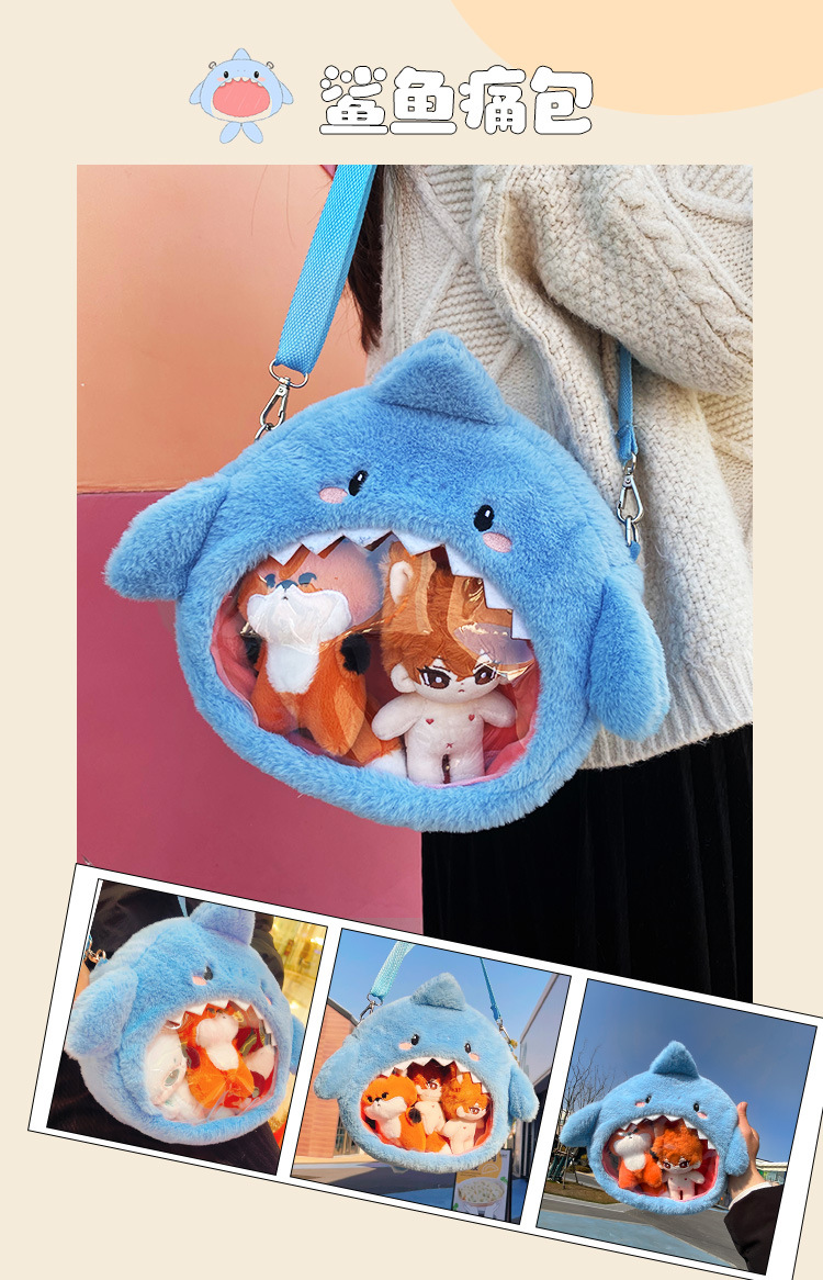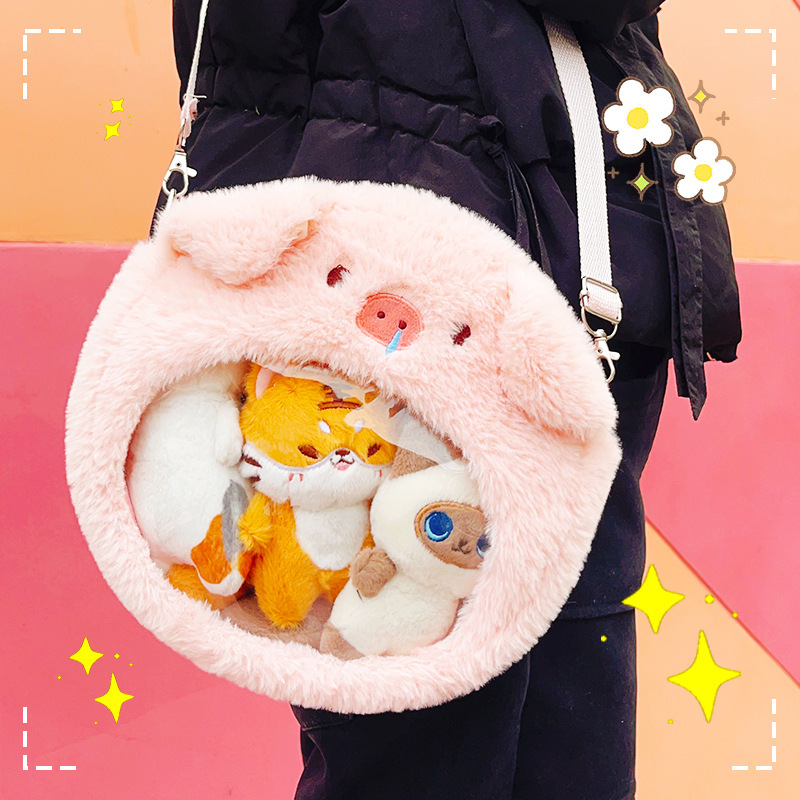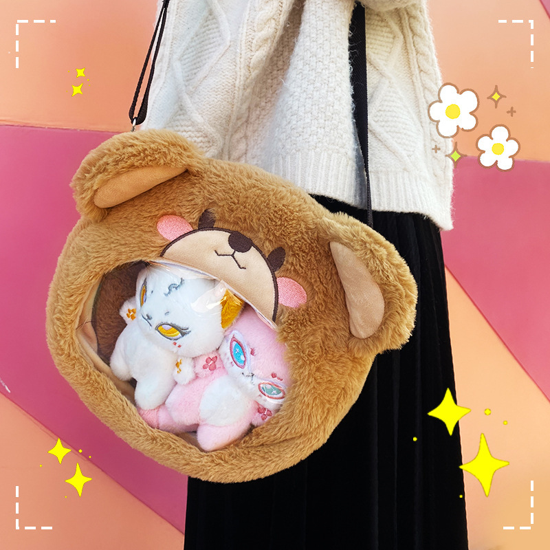 더블 20cm 면 아기 인형 가방 더블 숄더 아웃 백 봉제 크로스 바디 동물 통증 가방 소녀의 심장 투명 작은 가방스토어 가기