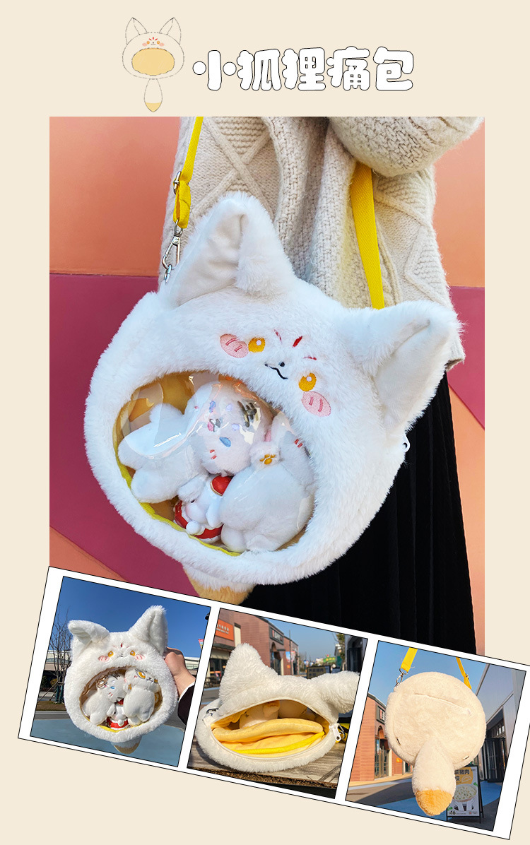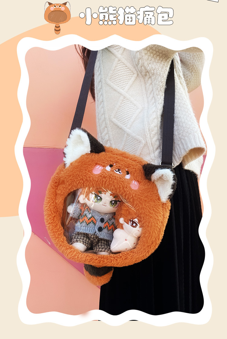 더블 20cm 면 아기 인형 가방 더블 숄더 아웃 백 봉제 크로스 바디 동물 통증 가방 소녀의 심장 투명 작은 가방
