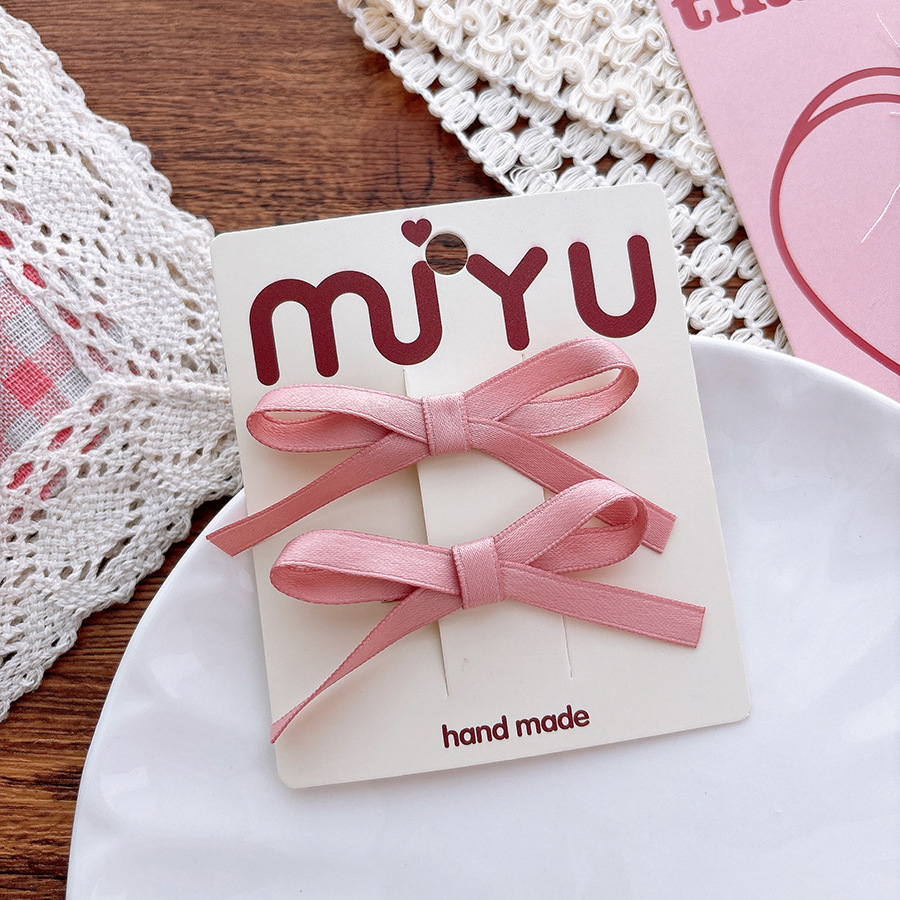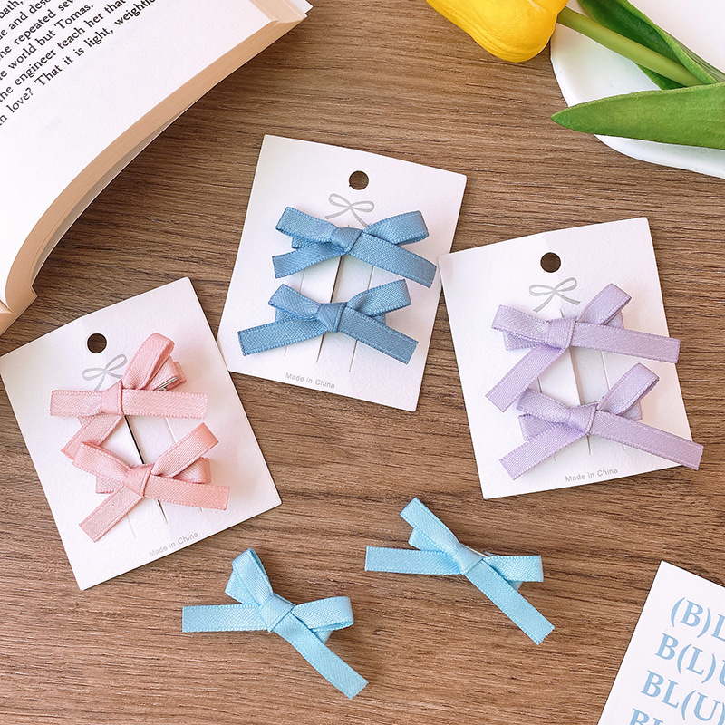 2 부드러운 발레 스타일 달콤한 스몰 사이즈 리본 리본 머리핀 손으로 만든 더블 클립 소녀 공주 헤어 액세서리