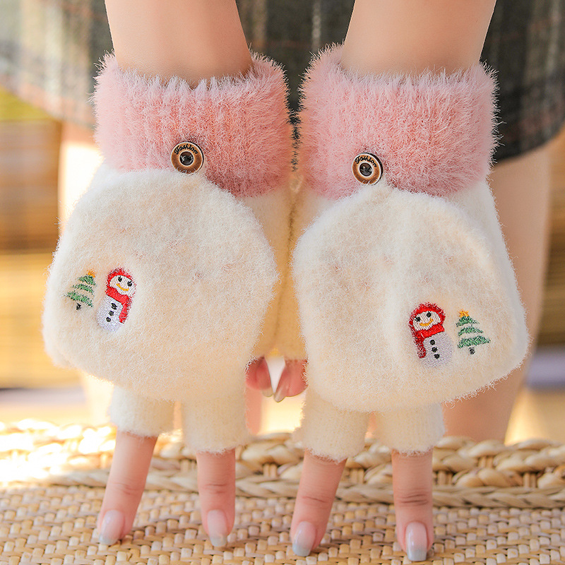 여성용 가을과 겨울 뜨개질 양모 이중 목적 남성 학생을위한 플립 탑 반 손가락 장갑 겨울 따뜻한 노출 손가락