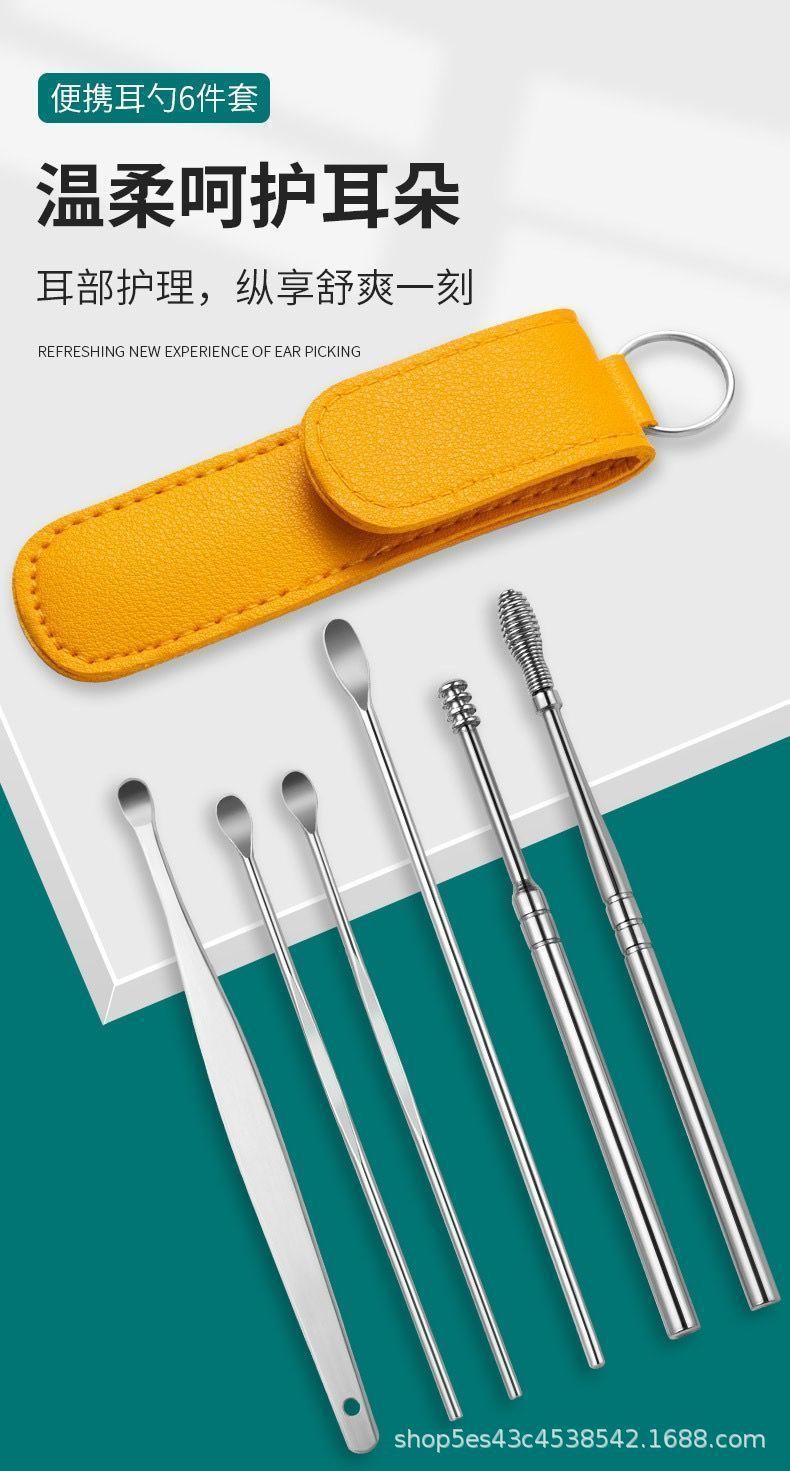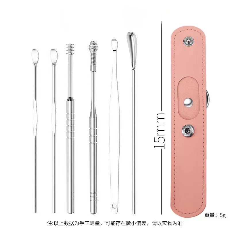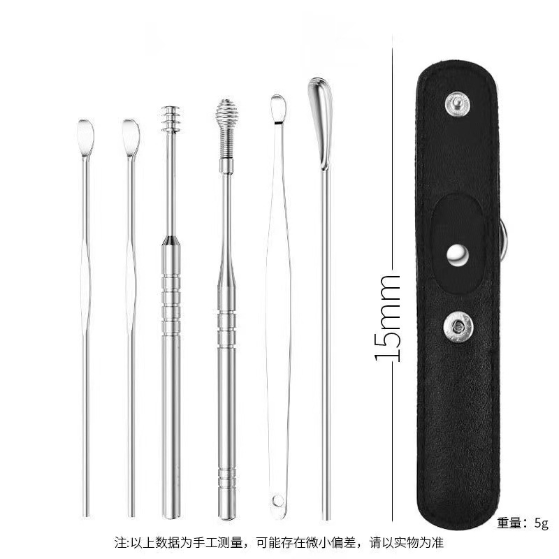 스테인레스 스틸 귀 국자 보관 가방 6 세트 성인 가정 나선형 귀 국자 편리한 귀 따기 도구 생성