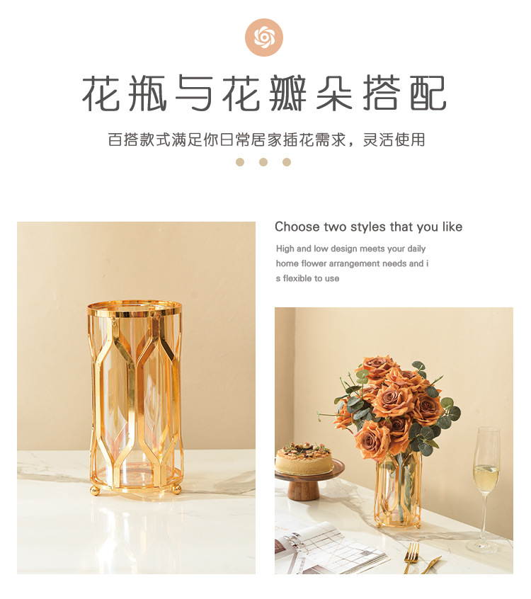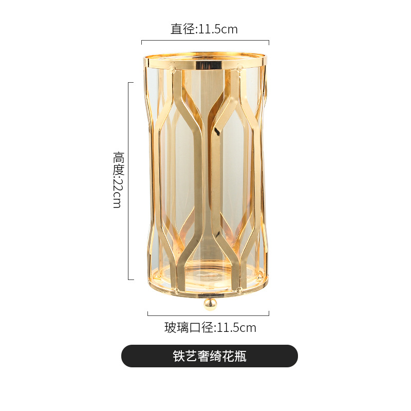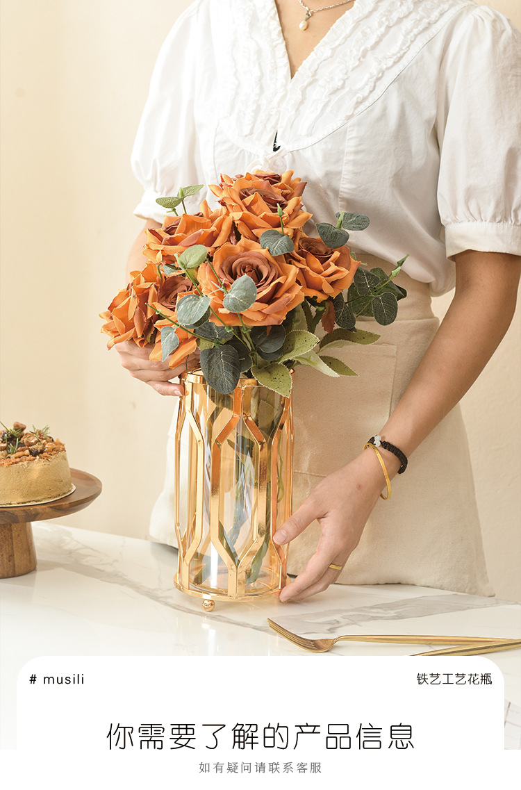 북유럽 스타일 단철 유리 꽃 배열 전기 도금 장식품 수경 유리 꽃병 홈 식탁 데스크탑 거실 장식 장식품스토어 가기