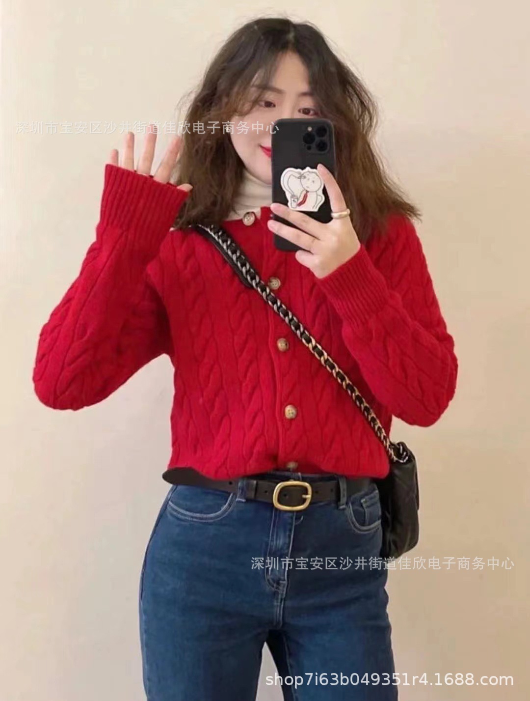 2025년 가을 클래식 아메리칸 스타일 자수 레트로 꼬임 니트 여성 가디건 스웨터 재킷스토어 가기