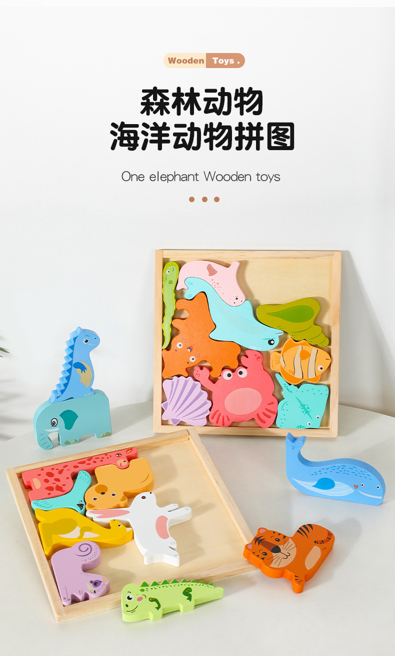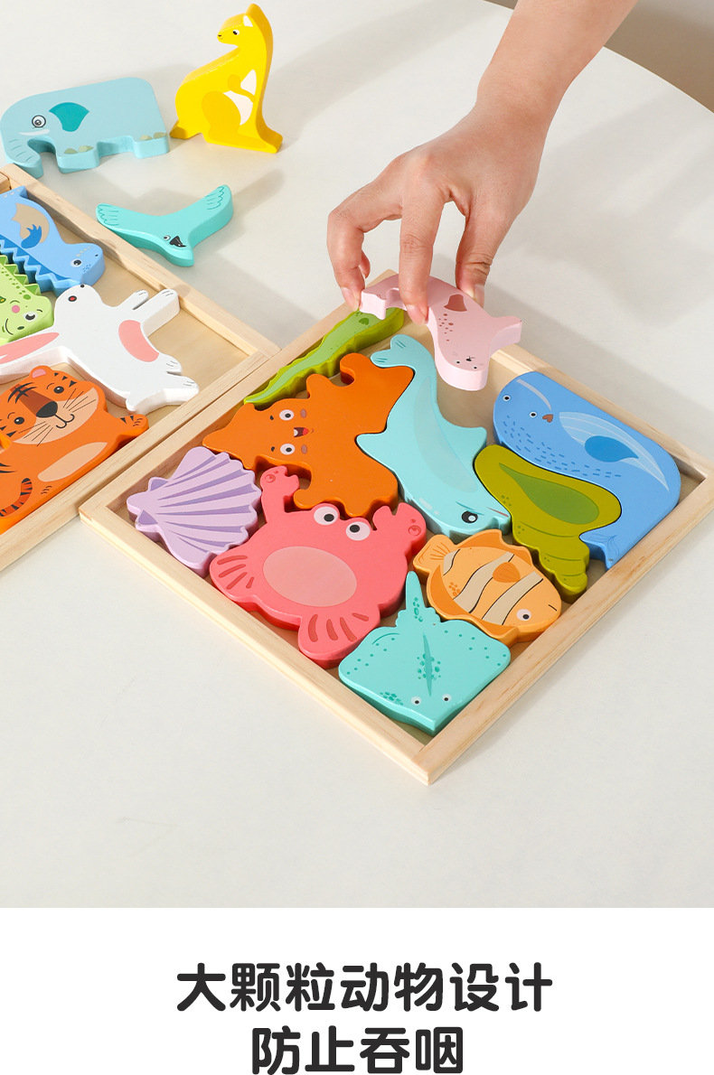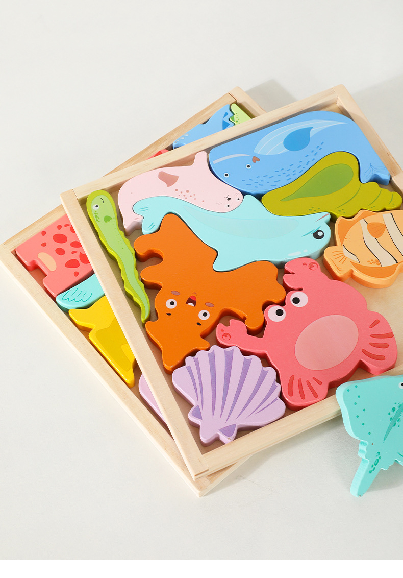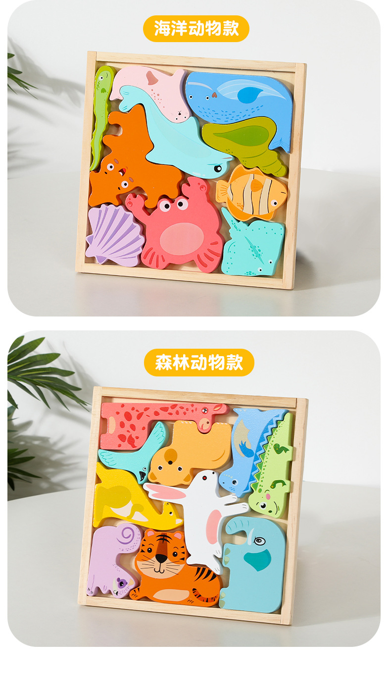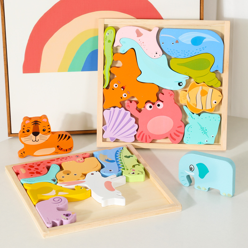 어린이 만화 동물 마린 3 차원 손 보드 퍼즐 아기 조기 교육 건물 블록 나무 장난감스토어 가기